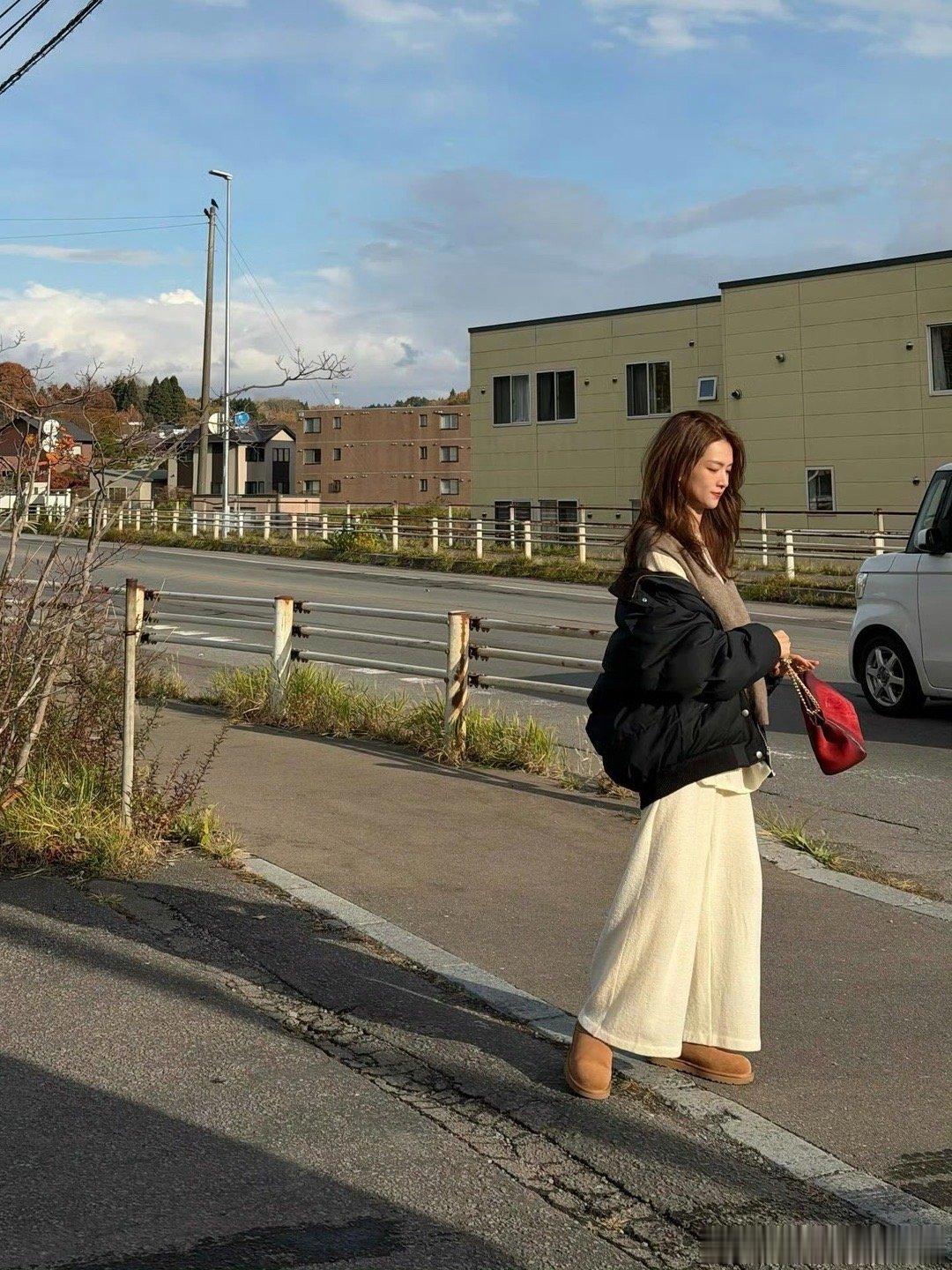 刘亦菲把死亡玫粉穿出了定制款的感觉,这种颜色普通人穿上分分钟黑三度,她居然能穿出