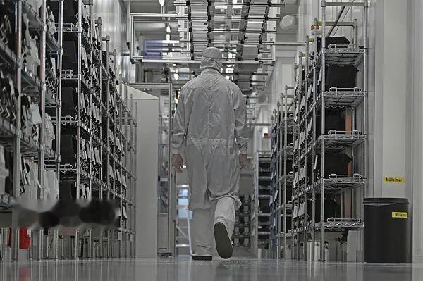 安世半导体的一名员工走过该公司的洁净室。视觉中国
