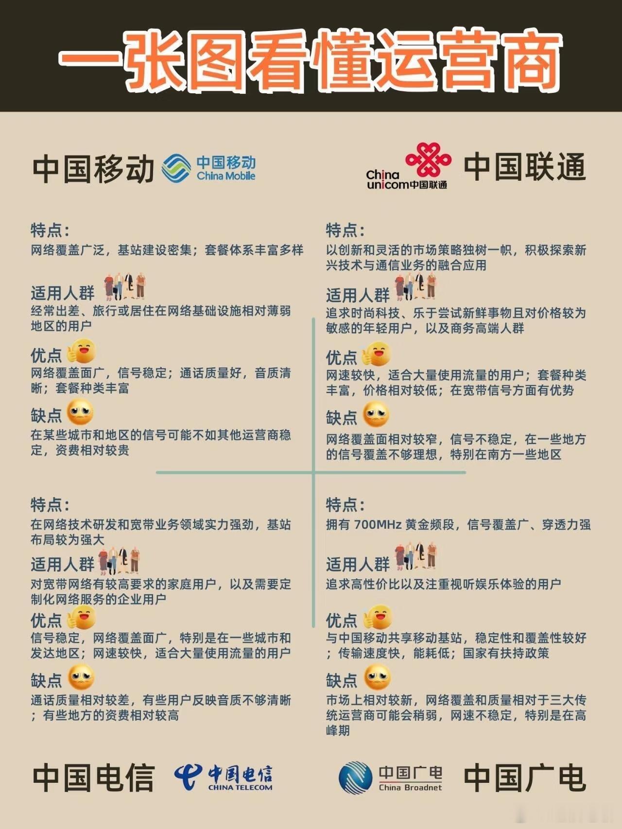 网友四大通信运营商的特点,好像有些道理!你用的哪家?