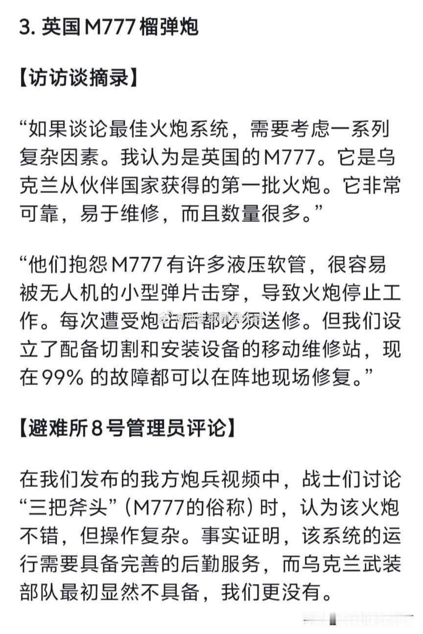 [呲牙] 据乌克兰反映,西方援助的武器装备性能不错,人机工效也比较好,但是操作起来比较复杂,需要开展有针对性的训练和培训。另外,整个武器体系比较“娇贵”,不太适合俄乌交界地区的气候环境,配件和保障物资种类繁多,需要完善的西方式后勤保障体系才能支持作战。 [呲牙] 怎么说呢,东西不错,但总感觉有点不顺手。