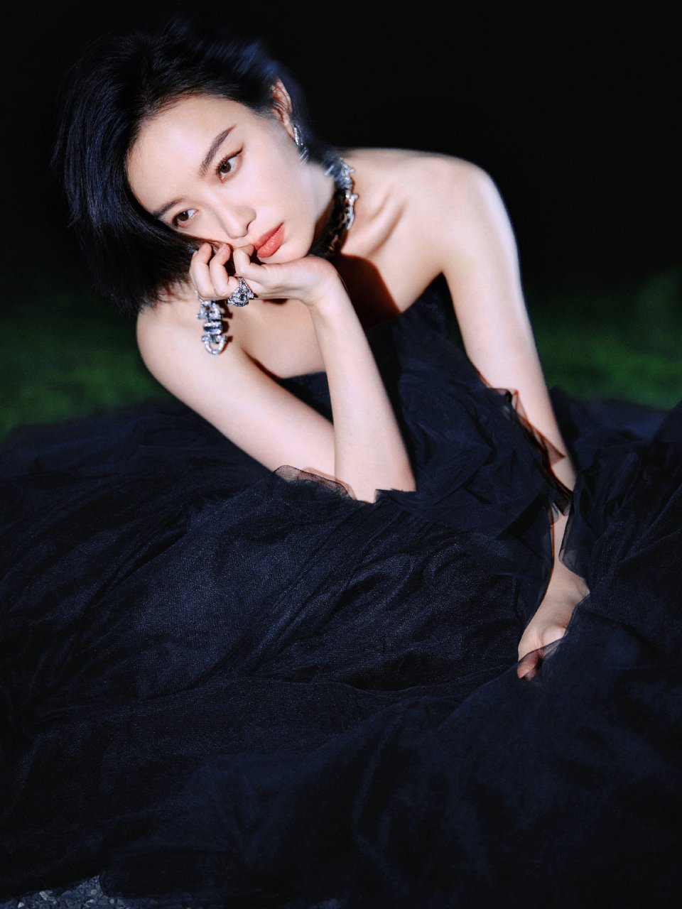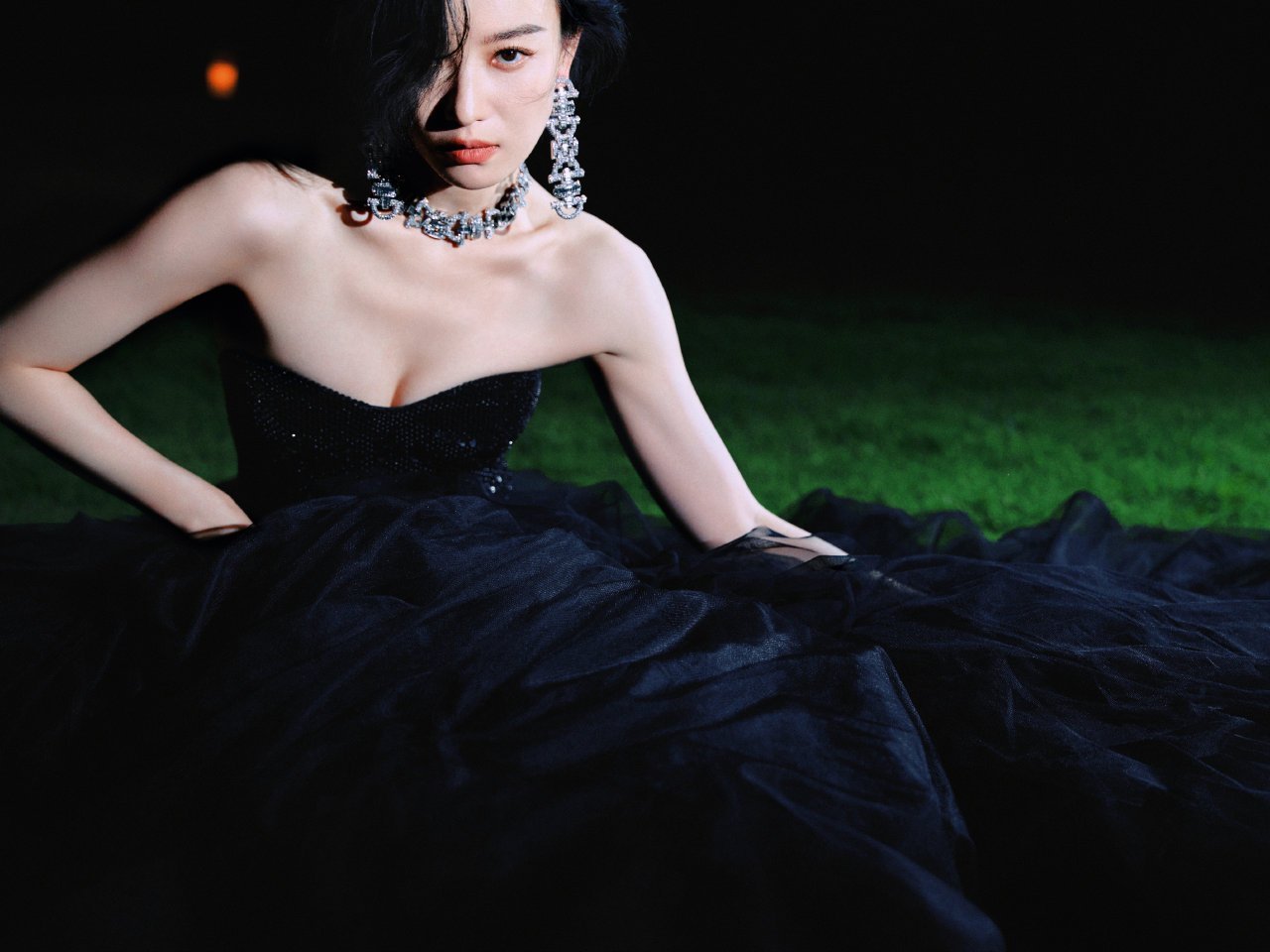 倪妮 × 中国电影金鸡奖Gucci La Famiglia 系列的亮片露肩鱼尾纱裙