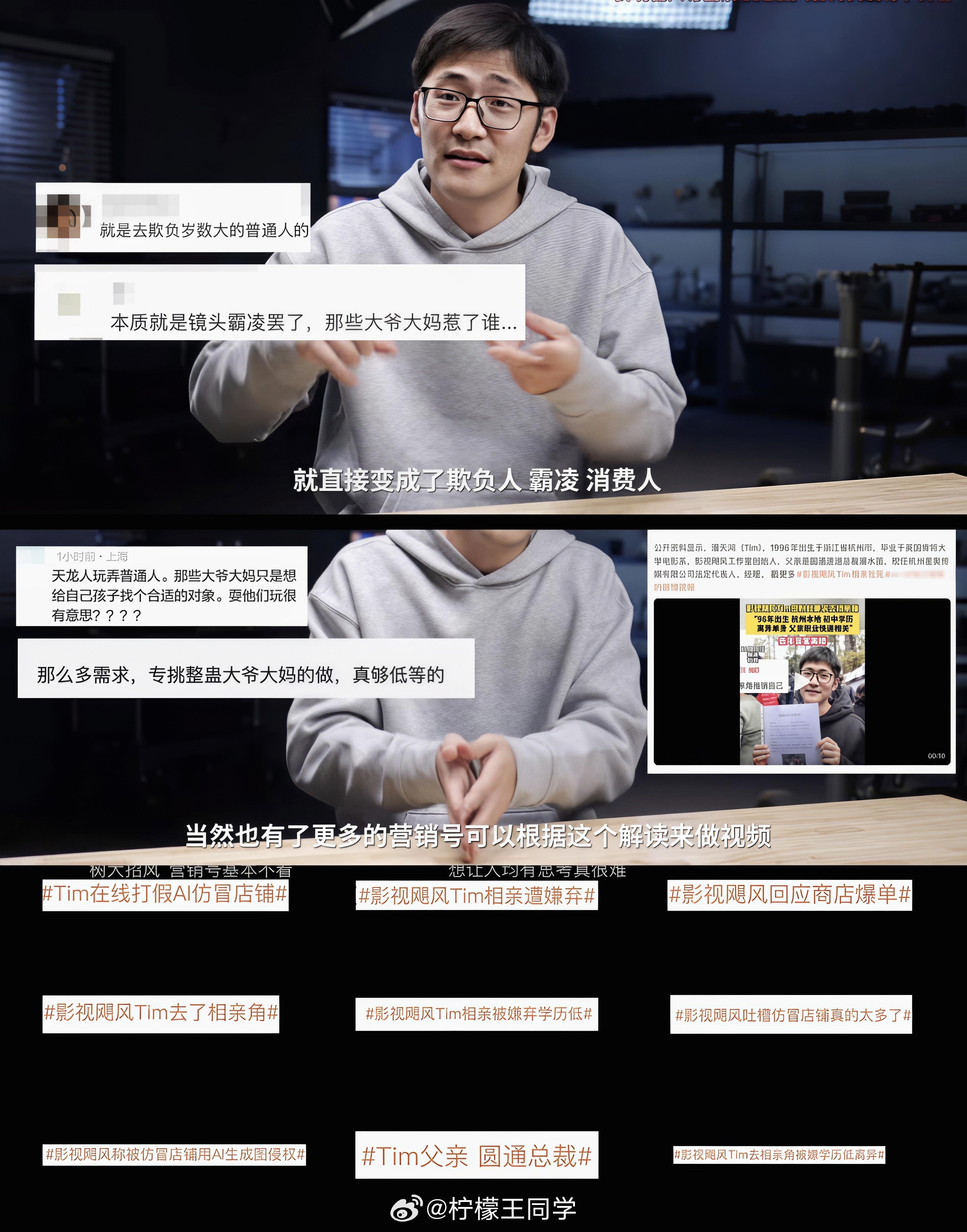 我时常在想,为什么这么多人对针对这期视频,针对Tim或许是Tim的优秀让更多的人眼红,他们只愿意接受身为圆通之子的成功,却不愿意接受Tim自己努力之后的成功,然而事实是后者