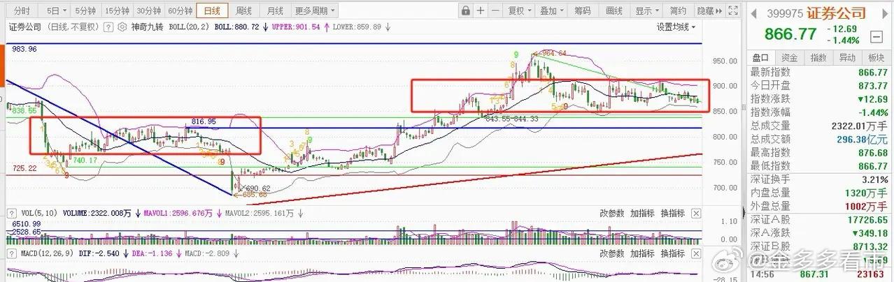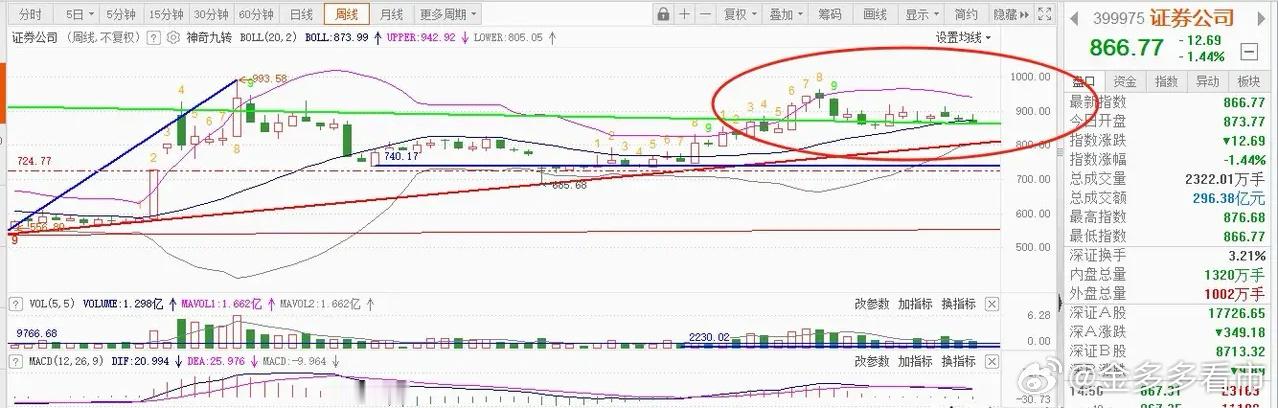 “证券板块将迎来格局重塑,板块估值修复可期”,这是众多投资者一致公认的结果。目前,证券板块估值仍处于历史相对的地位,PB只有1.51,处于正常区域内,低于历史57.24%的时间;证券行业资产收益率稳步攀升,2025年三季度达到了7.80%且2026年依然有稳步提升的可能。站在当下时间的节点,随着流动性的继续改善、利好性政策的出台,券商估值有望随市场改善而进一步的提升。所以,若证券板块下周出现了急跌,即使不敢出击,首先想到的,不应该是害怕。从证券公司指数日K线走势图看,图中有两块很明显的区域:第一个是今年二三月份调整时构筑的震荡平台,大概位置位于769点~809点(816点)区域第二个是站在正在构筑的平台,预计将围绕845点~939点近百点区域内进行构筑。这两个平台,有一个共同的任务,即:为了反弹的更高。第一个平台,今年二三月份构筑形成,当时资金通过证券ETF共计净流入金额超百亿,现在(816点)已经形成了坚定的支撑能力;第二个平台,正在构筑,资金通过证券ETF实现净流入金额超500个亿,若这个中枢平台完成构筑,近百点的震荡空间必将形成新的跳板。所以,在跌破90日线支撑之后,下一个支撑(120日线)不管会不会到达,都不应该被解释为风险。从周K线走势图看,趋势没破,这周守住了趋势,虽没能形成止跌,但不能排除有止跌的迹象。所以,下周,甚至未来的三周时间内,能不能形成“大底”,是非常值得期待的。对美好生活的向往,对股市稳中有进的追求,一定不要丢失信心。未来若有牛市,或A股继续走牛,证券板块的上涨,是不可或缺的因素。早安、周末愉快,中国的大好河山,值得四处走走看看