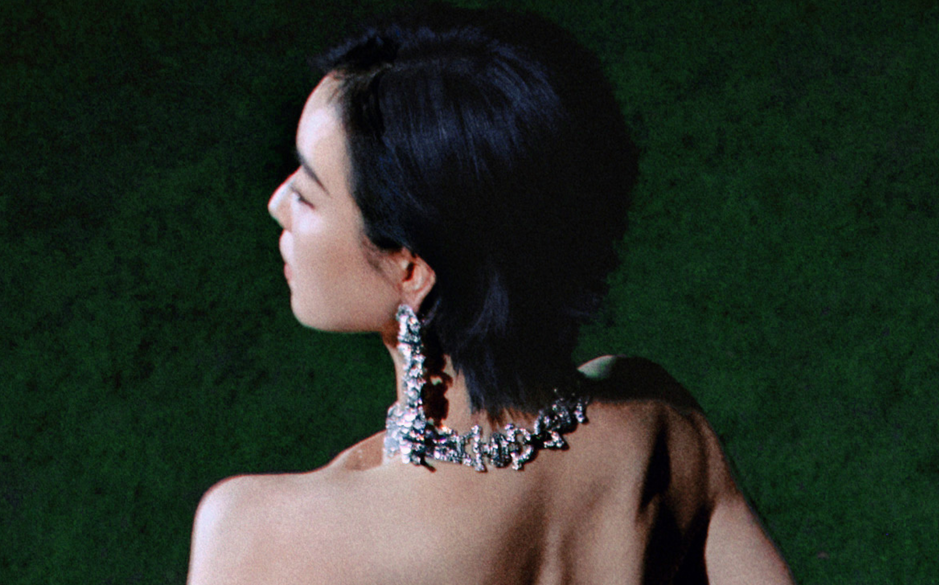 耳畔钻石流光与锁骨线条相映成辉,每一个转身都散发着飒爽与优雅并存的独特气场。