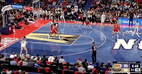 上场比赛只打8分钟,今天1秒都没上。湖人在衔接段摆的海斯工具人+4个火力点的阵容