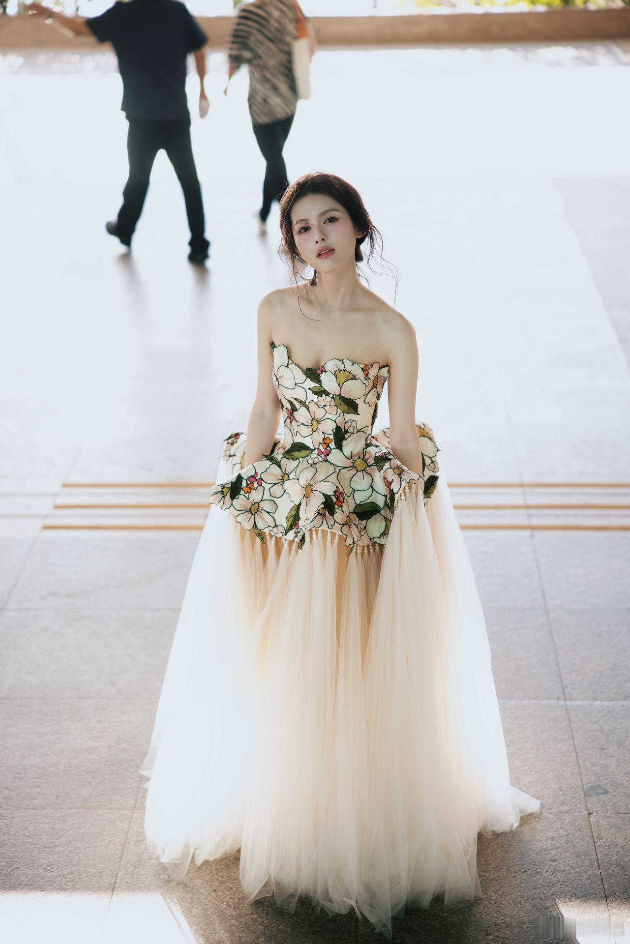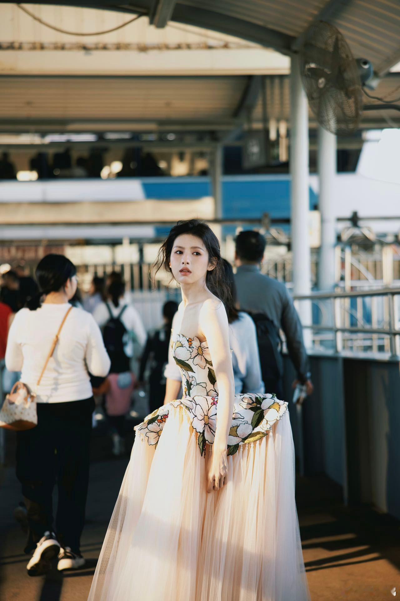 气质绝了!裸色长裙选得太对,海边场景加持,浪漫感直接拉满~