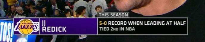 东契奇半场20分3板9助攻。本赛季统计:湖人在半场领先时的战绩为5胜0负,并列N