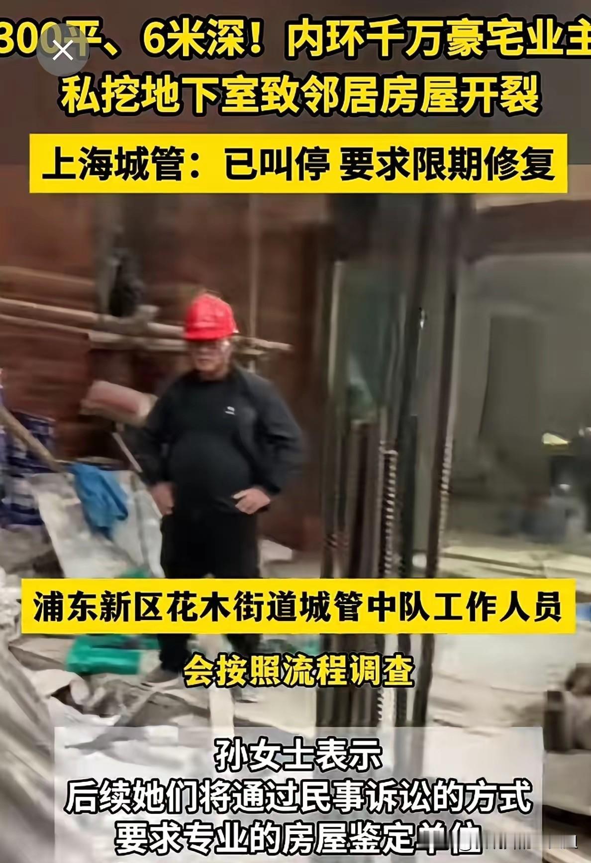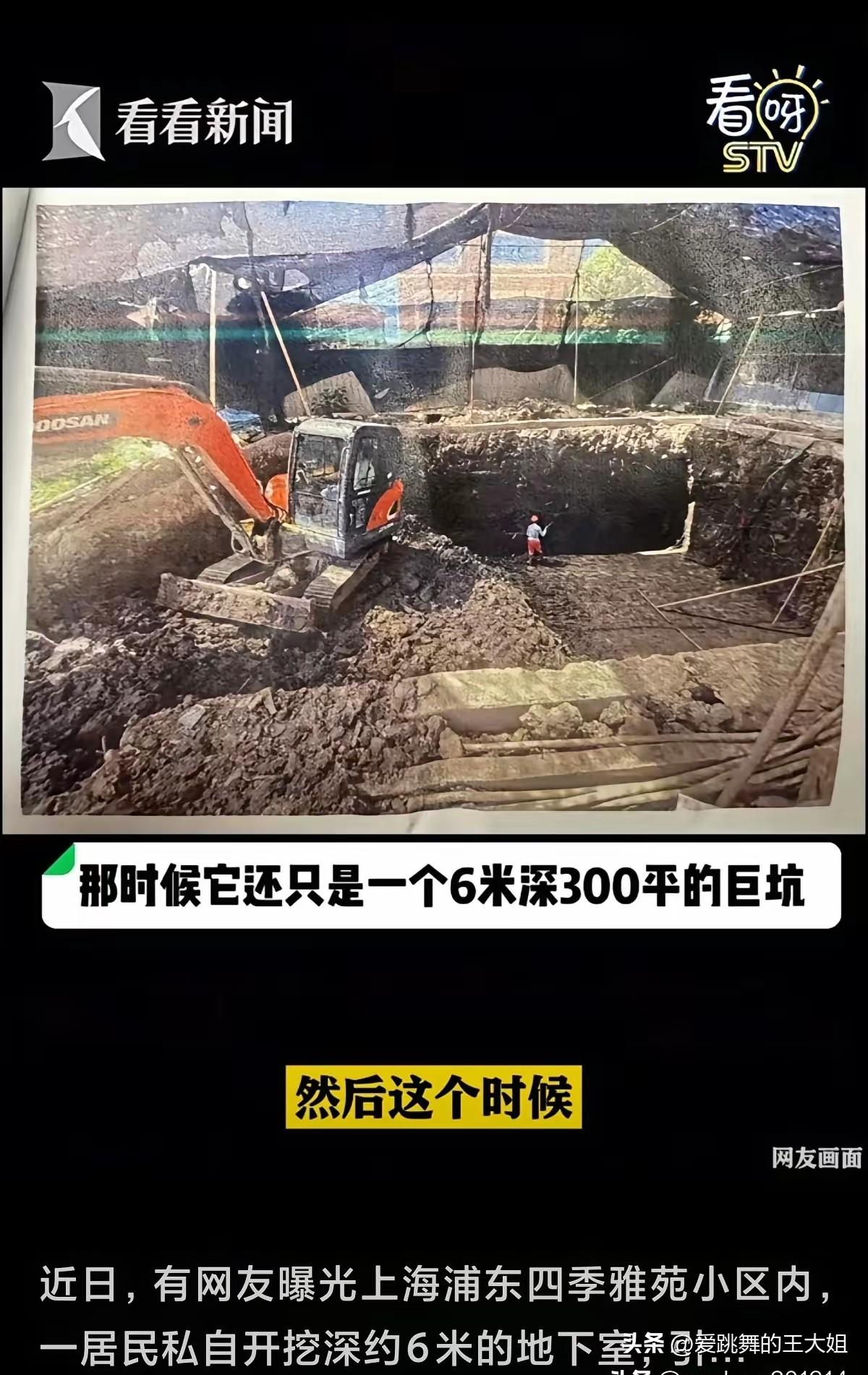 太恐怖了,上海一高档别墅群内,有业主发现邻居以借装修名义,在自家房子底下私自挖了一个巨大的地下室,深度达到6米,面积超过300平米,周围邻居房子发生了墙体开裂和渗水,邻居报警后,城管叫停了该工程。 这事儿发生在浦东花木路的四季雅苑小区,那位动手挖地的业主用黑布把整个院子罩得严严实实,愣是在里头挖出了一个近百平米、深三米五的“地下宫殿”。邻居们真是提心吊胆,眼看着自家墙壁裂开大口子,心里慌得不行,生怕哪天房子真出大事。房修专家到现场一看就明白了,这根本不是业主嘴里说的“加固”,完全是新建违建,而且施工手法特别野,连基本的基坑维护都没做,旁边房子能不开裂吗。 这种私挖地下室的行为在上海的别墅区里还真不是头一遭。有些业主总觉得“我的地盘我做主”,买了房子就想怎么改都行,却忘了土地所有权是国家的,任何建设都得符合规划许可。这里面还有巨大的利益驱动,想想看,多挖出几百平米的地下室,房子的使用面积和价值能提升多少,一些业主就甘愿铤而走险。 监管上存在的漏洞也给这种违建提供了空间。别墅区私密性高,院里动工外面不容易发现。就算物业发了整改通知,施工方也可能阳奉阴违,偷偷继续干。等到城管介入,认定违建的程序比较复杂,等走完流程,违建可能都弄得差不多了。虽然现在的处罚措施包括责令整改、罚款甚至强制拆除,但有时候罚款金额和违建带来的增值收益相比,威慑力可能不足。好在现在有了新招,对存在违建的不动产,在处置完之前可以限制其登记和交易,这招“冻结”房产直接打中业主要害。 这起事件也暴露出物业管理在装修监管上可能存在薄弱环节。业主装修前报备的图纸看起来正常,实际施工却完全是另一套方案。物业公司需要真正负起责任,加强巡查,对初期违建苗头坚决制止,不能因为怕得罪业主就放松管理。 值得欣慰的是,事件在媒体曝光和城管部门督促下有了新进展,涉事业主已经开始回填深坑。街道方面也表示会对整个别墅区的装修户进行排查,坚决遏制这类违法行为。 各位读者你们怎么看?欢迎在评论区讨论。