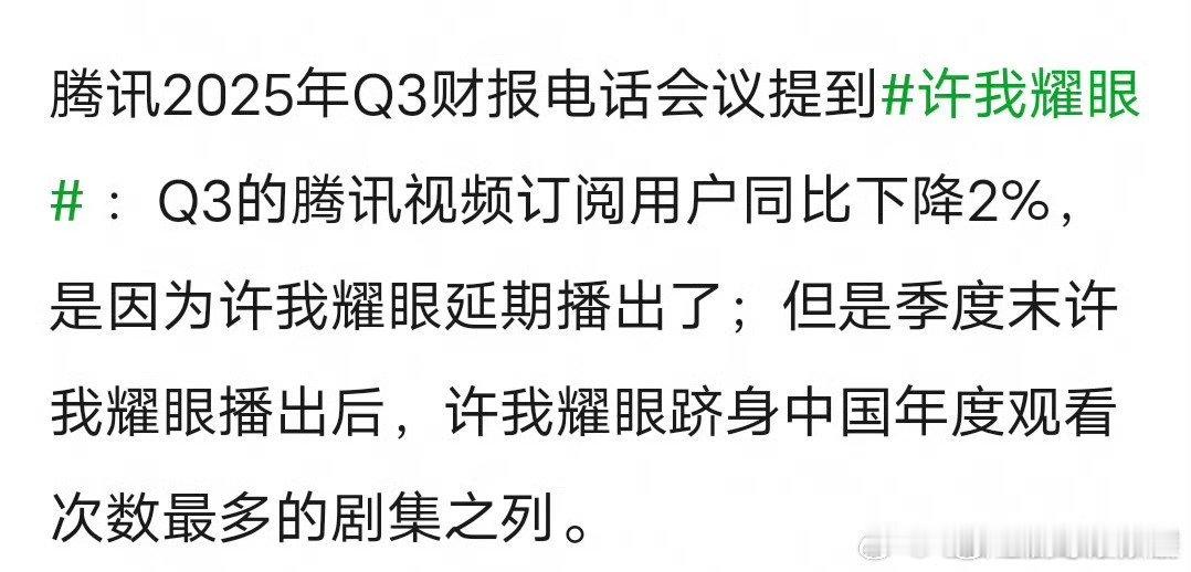 腾讯认为Q3会员用户数量下降,是因为赵露思的《许我耀眼》延迟播出了……真的不是因为云包场难抢,要求多,播放限制多等一系列自己的操作嘛