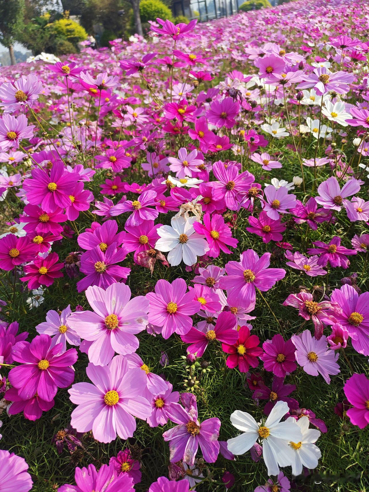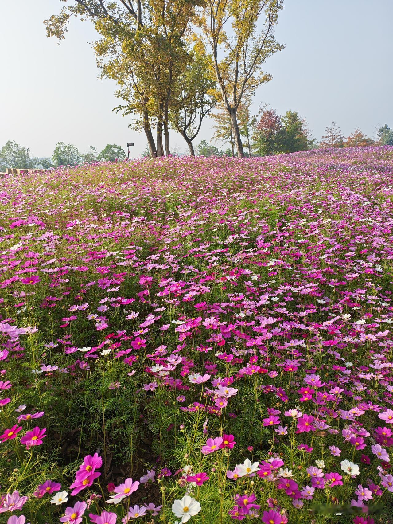 作为一个男人,我好像也特别喜欢花儿。好在杭州一年四季都不缺花,哪个地方都有花。公园自不必说,学校、机关单位、农家小院、田间地头、公路两旁都有花,就是高速立交桥上也常常是花团锦簇。 今天去阳陂湖湿地公园,看见一对情侣在公园花丛中拍照,我告诉他们东边大门口还有一片波斯菊花海,女人非常高兴地要去,男的却说累死了,不想去。是不是并不是每个男人都跟我一样爱花?陪老伴看花,我从来没有推辞过,因为我自己也喜欢花儿! 秋日湖边寻芳踪,爱花如何不丈夫?
