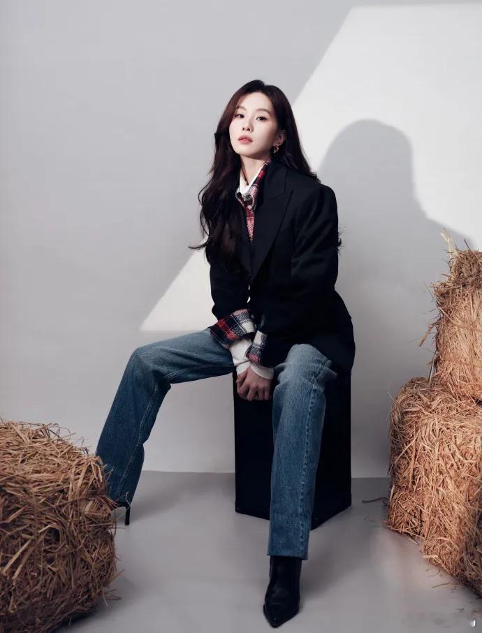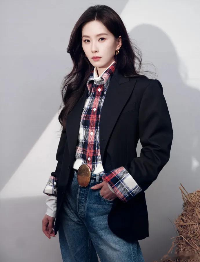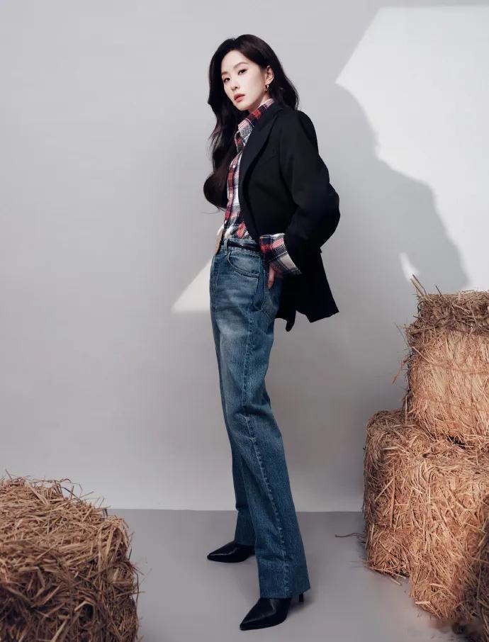 刘诗诗的气质真是出挑,穿黑色西装+格纹衬衫+牛仔裤,简约又高级!!!!