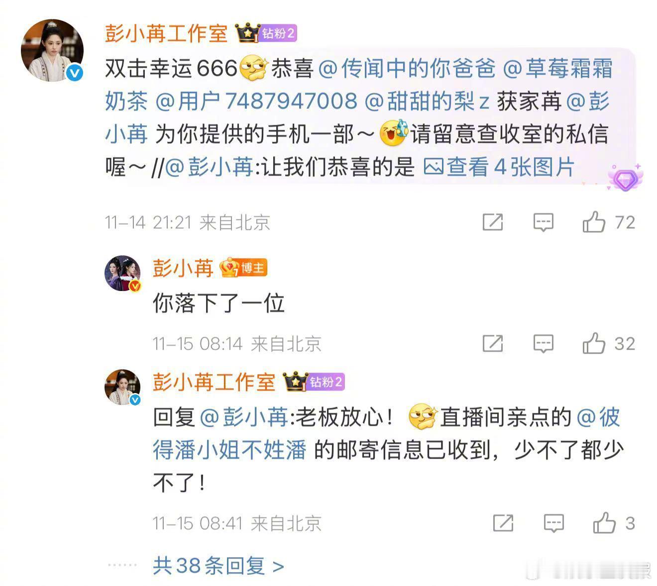 这波操作真的戳中人心!抽完奖还特意花时间亲自核对、公布名单,确保每个中奖粉丝都能被精准找到,5 部手机的福利兑现得明明白白~也为这样真诚的小苒打call