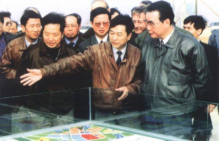 1992年11月18日,在湖北省委书记关广富(前左一)陪同下,国务院总理李鹏(前