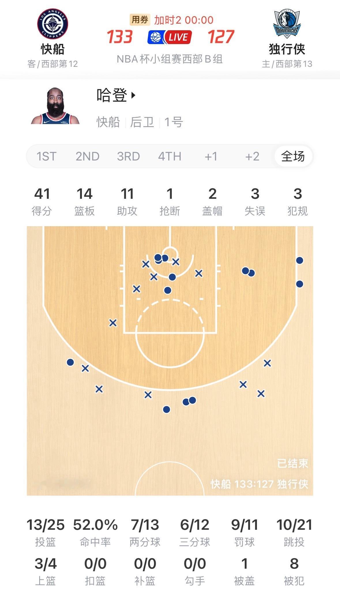拼尽全力!哈登出战51分钟41分14板11助攻,带领快船双加时击败独行侠。