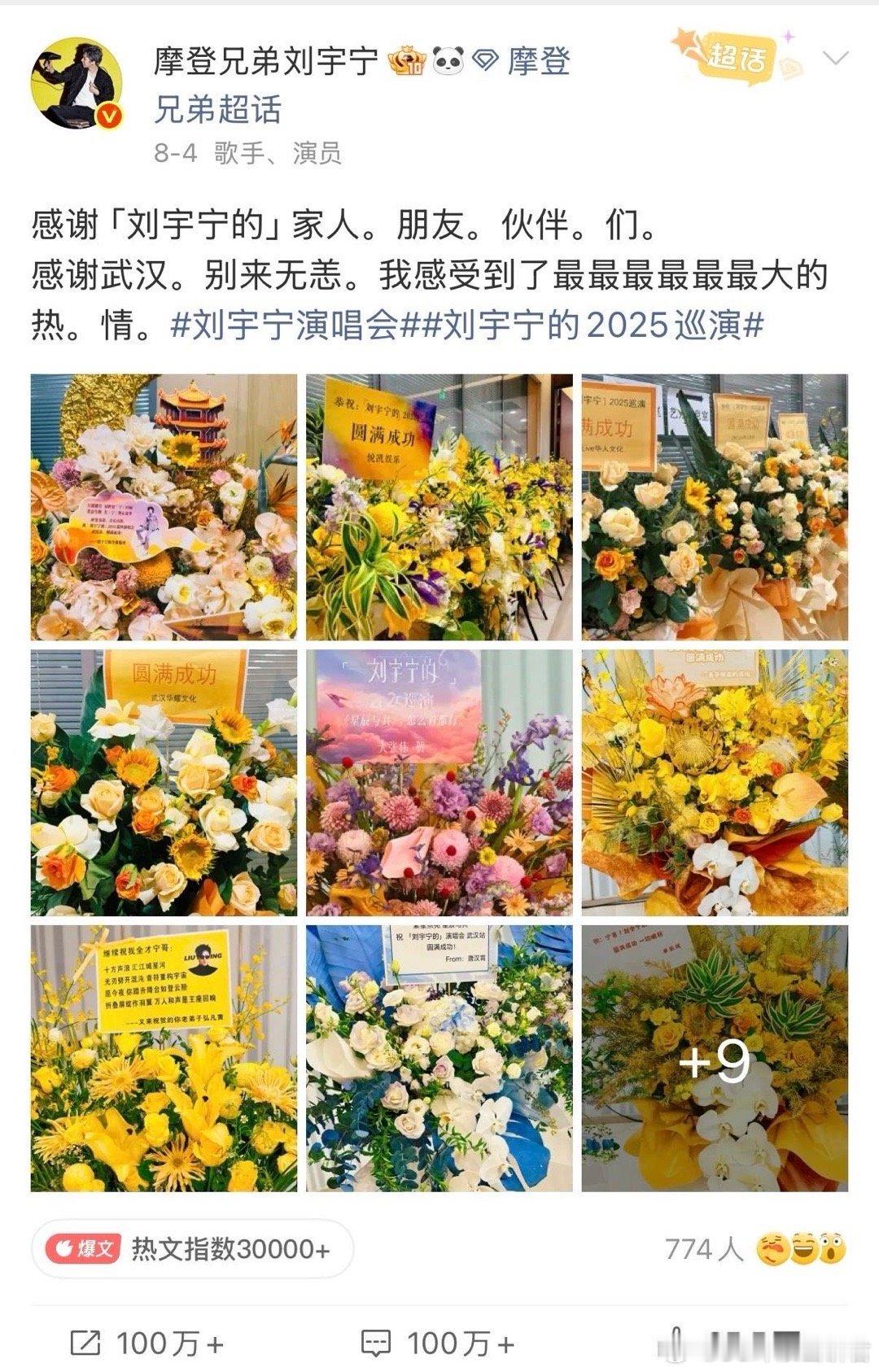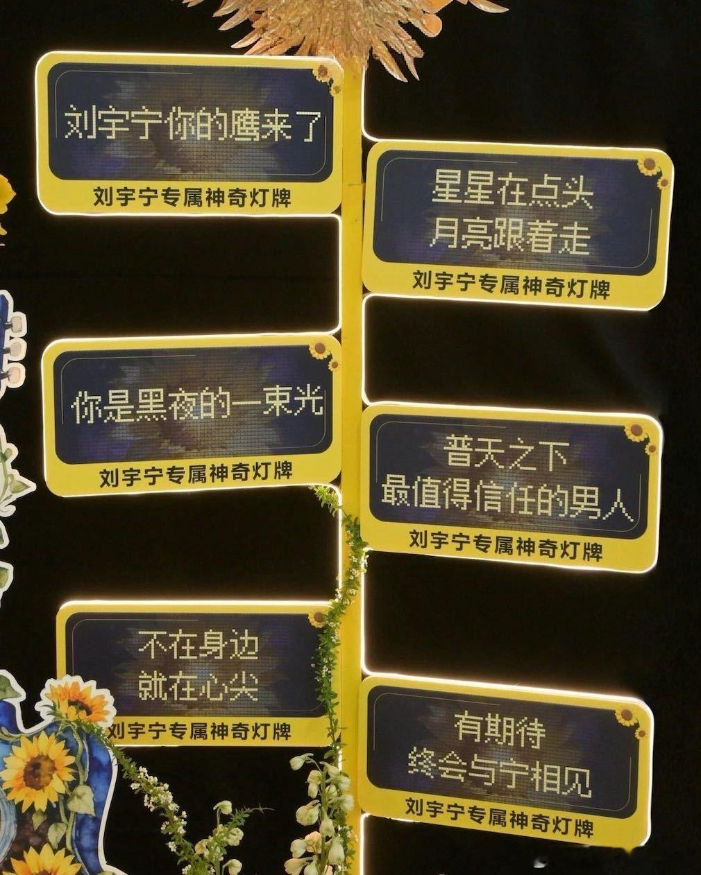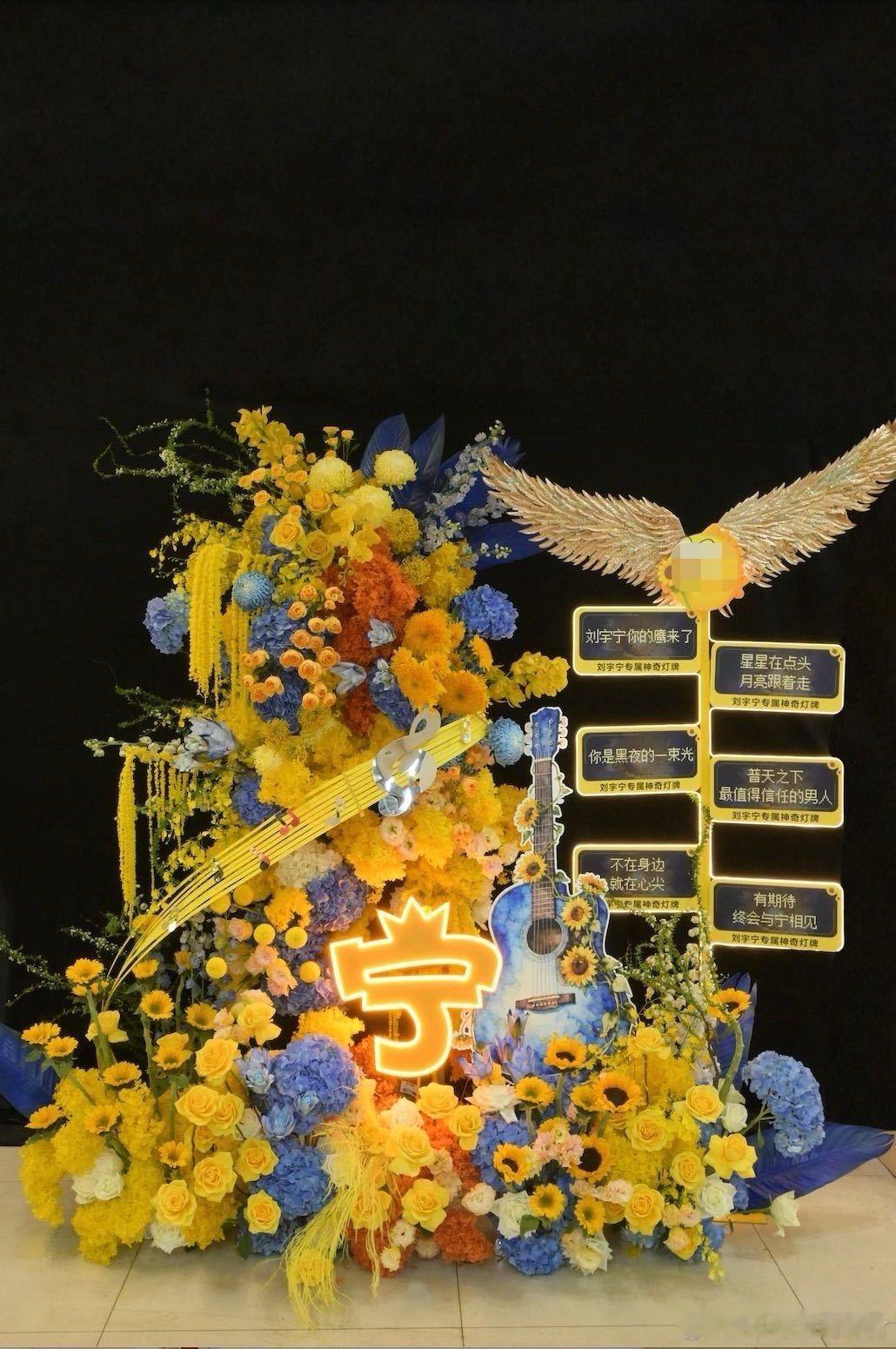 震惊!190+的刘宇宁竟被花篮“碾压”!黄蓝配色的巨型花篮比人还高,吉他元素暗藏巧思,现场直接变成花海。最搞笑的是灯牌:“刘宇宁,你的🦅来了”,这排面属实给足了!