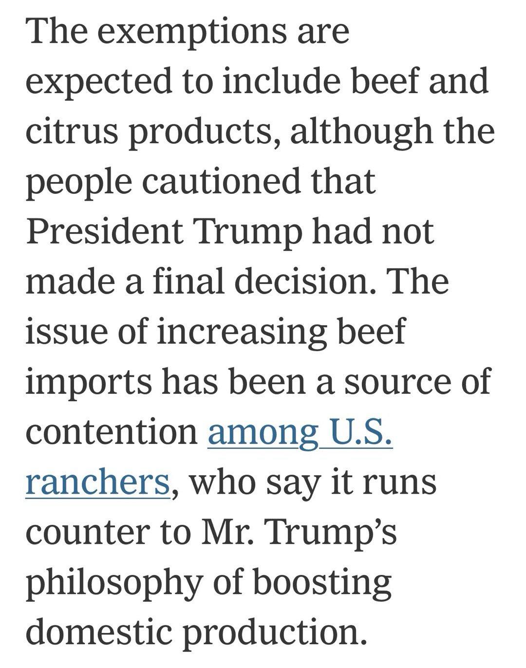 美国政府,正在准备一份“关税豁免”清单,包括一千多种商品,例如咖啡、香蕉、柑橘、菠萝、香草、金属、矿产、抗生素等等。 还没有最后确定,因为担心:增加牛肉进口,会引起美国牧民不满;豁免没主动谈判国家的商品,是鼓励“不配合”行为。 但最近选举的结果,清晰显示:物价是选民最关心的问题,对民主党攻击现政非常有利。 虽然特朗普还在公开声称“没有通胀、物价很低”,但行动上已不得不想办法解决。