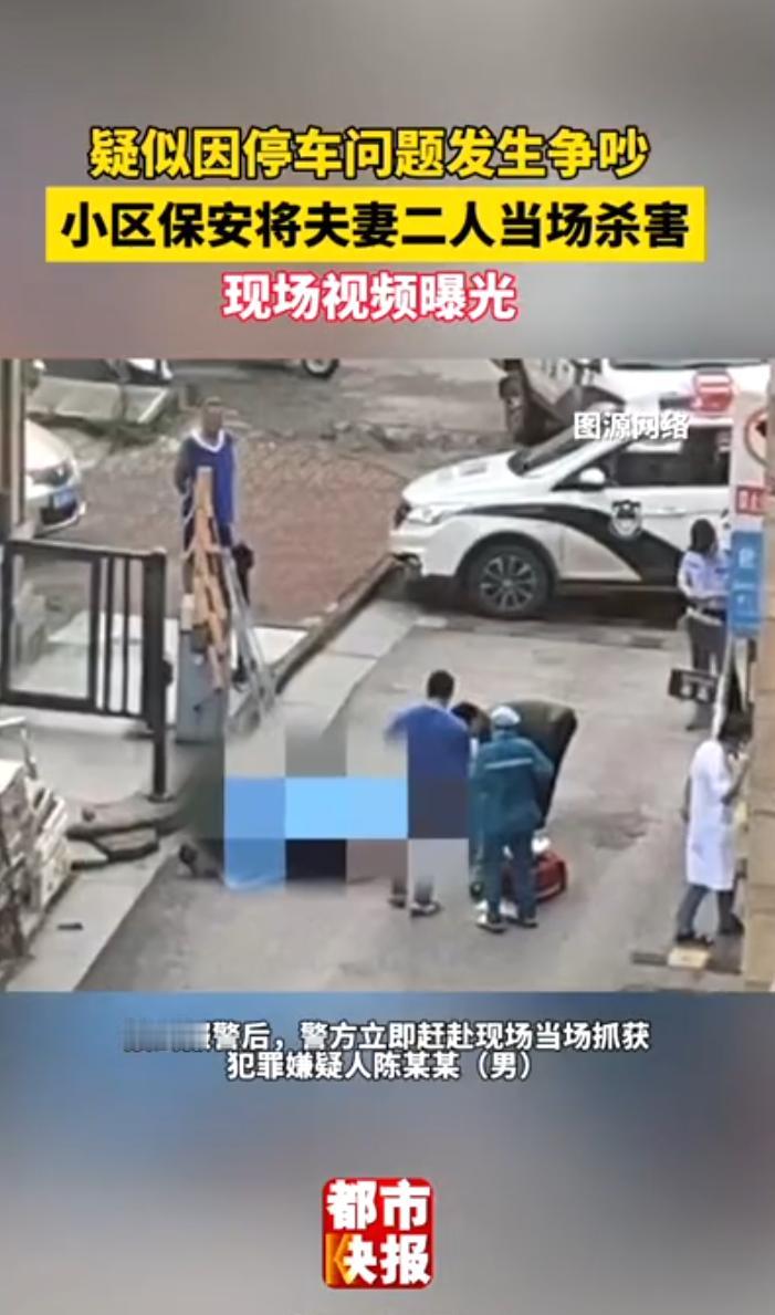 这是一起保安杀死两名业主的恶性案件。事件起因是一对夫妻在小区地下室乱停电动车,保安多次提醒无效后锁车。 夫妻发现车被锁后,与保安发生争吵。保安开锁让他们骑走车,但夫妻继续辱骂保安,甚至用石块砸保安亭窗户。 争吵升级为肢体冲突,丈夫拿起石块,妻子则拿起一把刀冲向保安。在夺刀过程中,保安情绪失控,用刀将夫妻二人砍伤,最终导致两人死亡。 警方迅速赶到现场,将保安制服并带走调查。如果这把刀是这对夫妻拿的,那应该有正当防卫情节,把老实人逼急了也挺恐怖的。