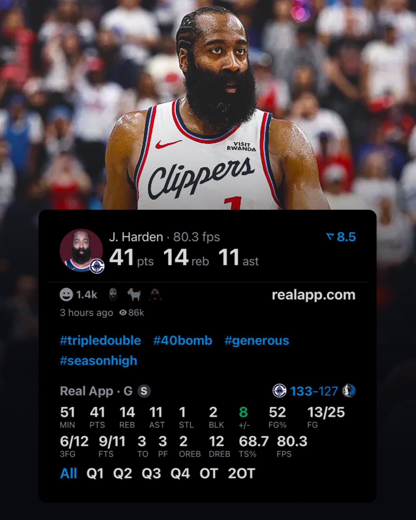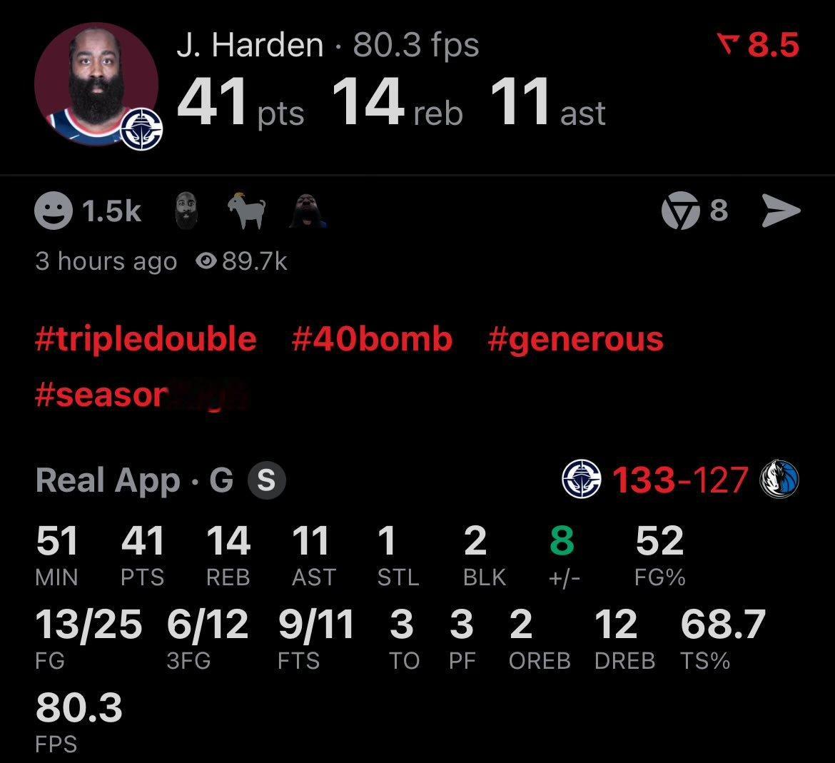 什么水平??今天的哈登:——全场出战51分钟——投篮25中13,三分12中6,罚球11中9——得到41分14篮板11助攻2盖帽1抢断——快船队史第一个40+三双——带队双加时大战133-127击败独行侠燃尽了,真的燃尽了…