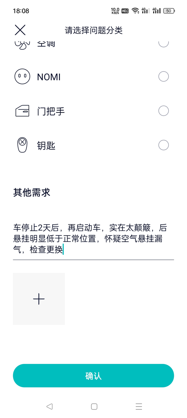 空气悬挂一如既往的差 前几天升级了所谓的系统,据说是改善了空气悬挂,各论坛也是各种跪谢。停了一天半,今天下午刚刚开一下,前面几分钟太颠簸了(这可是在水泥路面上,我怀疑这货有主动颠簸系统,能放大路面的不平!),实在吃不消,下车一看,后两轮的悬挂高度明显低于正常,轮眉离轮胎应该只有3-4cm,怕被甩在路上,赶紧回去再开一个油车跟着。10分钟后稍显正常。赶紧约服务,又得拖到南昌中心。大概率是空气弹簧漏气,前面换过3次