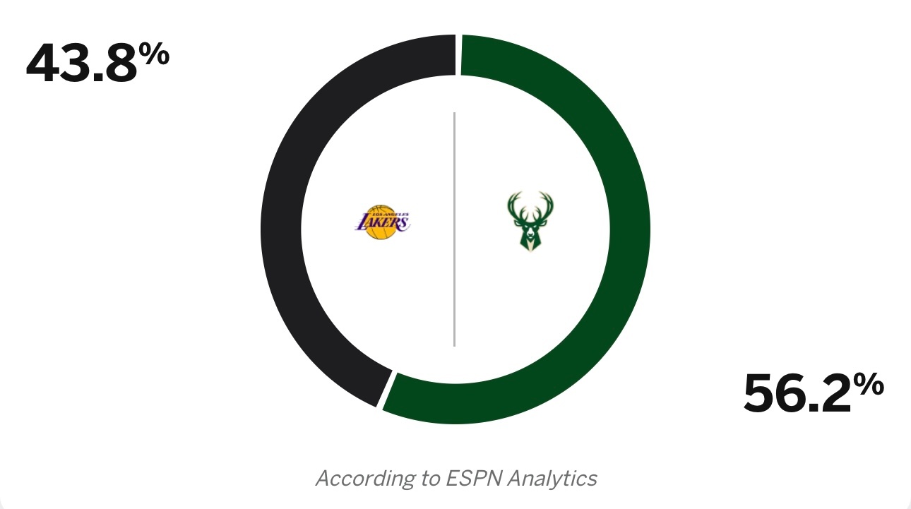 【比赛预告】明天9点,常规赛G14,湖人五连客最后一场打雄鹿,ESPN预测湖人胜率43.8%。【战绩排名】湖人9胜4负西部第4雄鹿8胜5负东部第5【近5场表现】湖人 胜负胜负胜雄鹿 胜负胜负胜【预测首发】湖人:东契奇,斯玛特,里夫斯,八村塁,艾顿雄鹿:罗林斯,AJ格林,库兹马,字母哥,特纳【伤病情况】詹姆斯、文森特继续缺阵。雄鹿伤情待明早更新。【攻防对比】湖人进攻效率第17,防守效率第17雄鹿进攻效率第9,防守效率第21