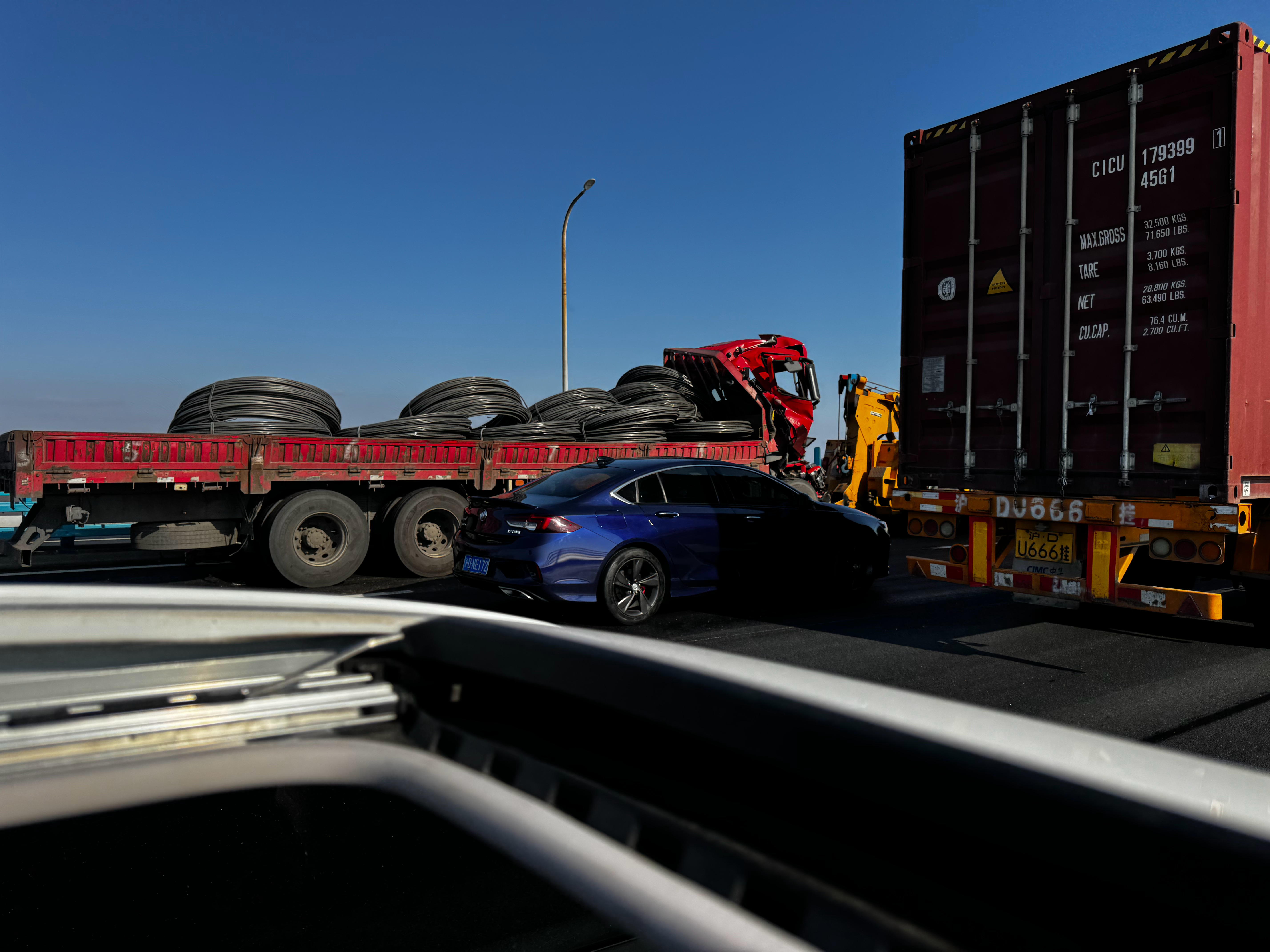 赶路途中偶遇了一个事故,希望后车车主没什么事吧…不过真别说南方高速这处理事故很人性化,太堵了就允许小车走应急车道了。