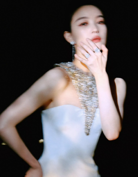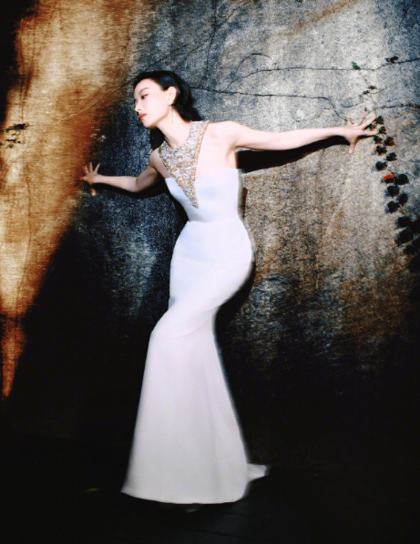 倪妮的珠片亮钻装饰的白色礼裙,这感觉如何?