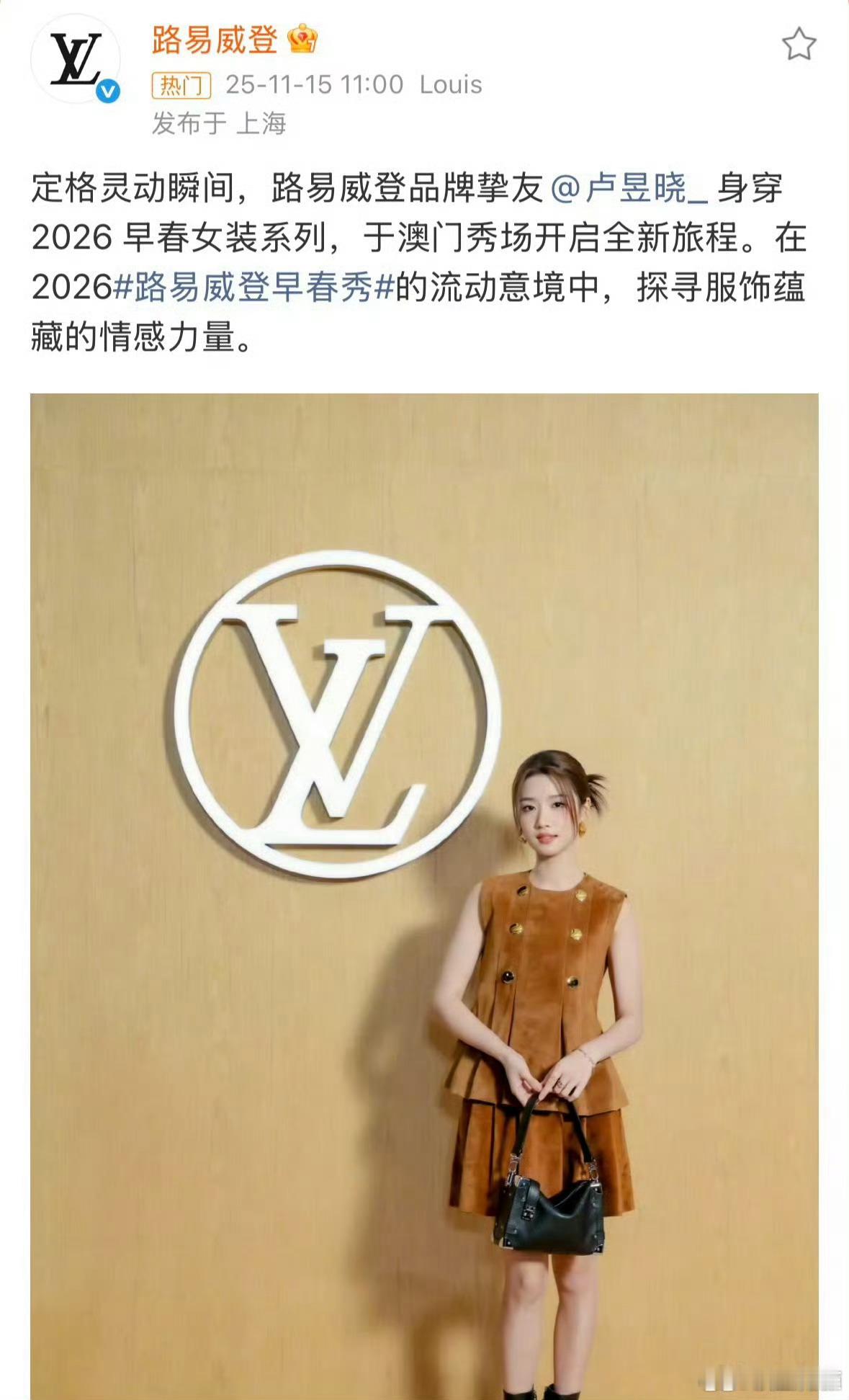 卢昱晓LV品牌挚友官宣,小鲈鱼也是越来越好了