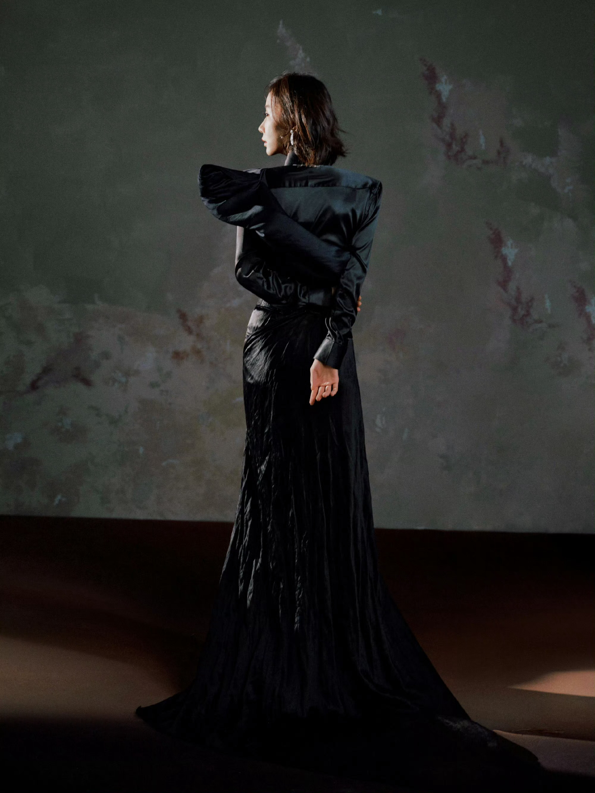 王珞丹身穿PEET DULLAERT 2025秋冬最新季高定搭配Chopard珠宝亮相金鸡奖红毯,解锁全新高定品牌。不对称结构all black造型以顶奢珠宝加持,整体简约高级又亮眼吸睛,美的