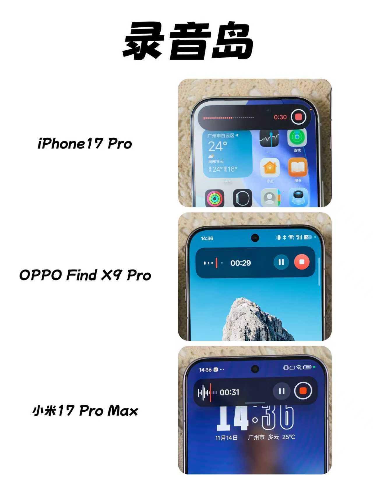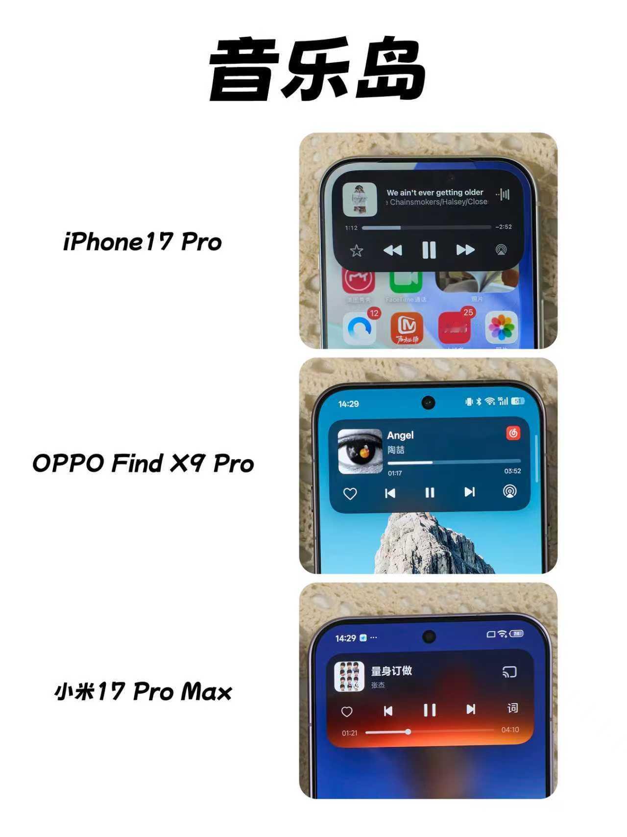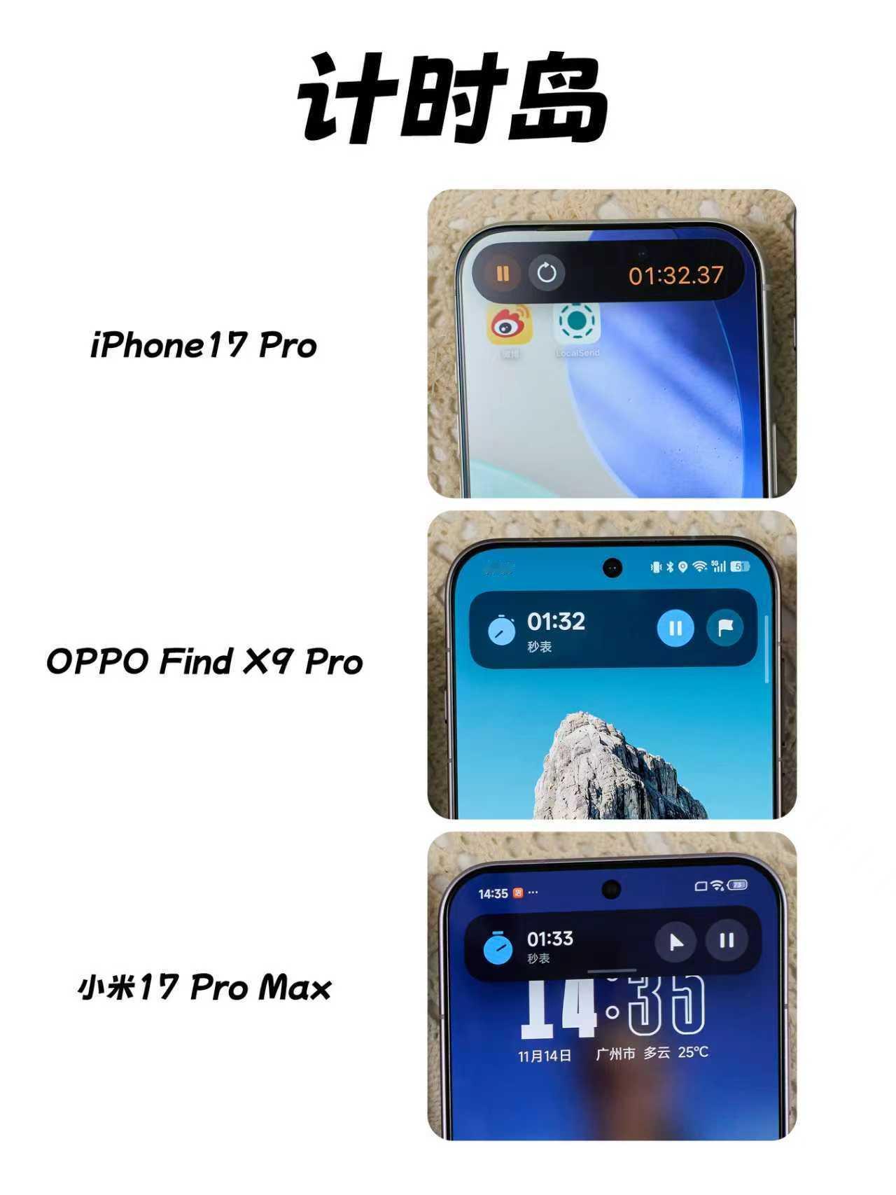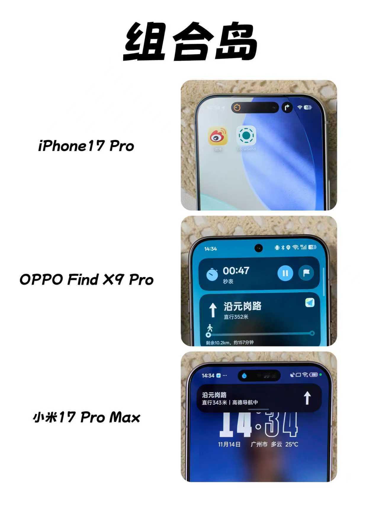 不看品牌的话,你觉得哪个灵动岛更好看? 现在的灵动岛花样是真多啊~ 三款热门大杯旗舰👇 ⭕iPhone 17 Pro的灵动岛 ⭕OPPO Find X9 Pro的流体云 ⭕小米17 Pro Max的超级岛 大家觉得哪个更好看哦? 苹果的iOS26设计风格比较统一 澎湃3系统感觉更年轻化一些 OPPO的ColorOS16质感很足,动画很丝滑 而且流体云能触发一百多个简直是适配狂魔 大家现在用的手机都是什么系统🙋♀️ 你觉得最实用的灵动岛是什么呢?