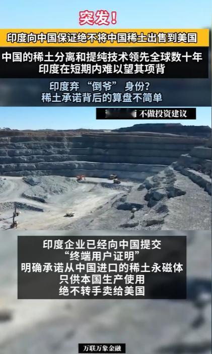 印度向欧美军工企业转售120吨稀土,此举彻底激怒了中方,印度人感到纳闷,他们是怎么追踪到这批稀土的具体流向? 这120吨稀土不是普通货,是高纯度的那种,专门用来造导弹制导系统的核心部件。   印度韦丹塔公司为了做这笔买卖,伪造了30多份文件,谎称买回去是给电动汽车做零件。一边拿着咱们的低价稀土,一边加30%的价卖给美国雷神公司,算盘打得隔着喜马拉雅山都能听见响。     可能有人会问,稀土买卖而已,为啥中方反应这么大?咱得明白,稀土不是萝卜白菜,是战略资源。   给民用企业没问题,可转头变成导弹的“心脏”,这就碰了红线。2023年的时候,他们就用差不多的套路,把120吨中国稀土通过泰国转手卖给了洛克希德·马丁,成了F-35战机的原材料。   重点来了,印度到底纳闷啥?他们觉得流程藏得够深了,文件也做假了,怎么就被精准定位了?其实答案特简单,不是咱们有超能力,是这套稀土溯源系统太硬核了。   这批稀土从内蒙古矿山挖出来那天起,就有了专属的“数字身份证”。包装上嵌着纳米芯片,每到一个环节——从加工厂到港口,再到出关,所有信息都会实时上传到监管平台。 更绝的是双重保险,物联网盯着物流轨迹,区块链保证数据改不了,哪怕少0.1公斤都能立刻报警。   说个细节更直观,海关发现这批货的电子标签定位到了泰国港口,跟印度申报的“本土电动车厂”地址对不上。 然后再顺着区块链记的资金流、物流一查,直接追到了美国雷神的军工仓库。深圳海关之前也查获过类似的,300公斤伪装成“东南亚制造”的稀土,一测“指纹”就知道源头是咱们这儿。   在这套系统的审视下,印度自认为天衣无缝的行径,就如同在透明玻璃房内作案一般,毫无隐秘性可言,一切都暴露无遗。   咱再往深了想,印度为啥非要冒这个险?说白了就是技术不行还想两头占便宜。全球92%的高纯度稀土精炼产能都在咱们这儿,印度90%的稀土磁材都得从中国买,连最基础的分离工序都做不了。   莫迪政府不是没调研过,来华考察后发现,想十年内追上咱们的技术,得投500亿美元,还得凑够科研人员——可现在他们搞这行的科研人员还不到50人,最高精炼纯度才92%,跟咱们的99.99%差着十万八千里,连开采设备都得从中国进口。   这事儿最讽刺的地方在哪儿?印度想靠卖稀土讨好美国,结果把自己坑惨了。   2025年上半年,他们从中国进口的稀土磁材直接暴跌67%,价格飙到每公斤3000美元。本土的军工和新能源企业本来就靠咱们的稀土活着,这下直接面临断供,真是捡了芝麻丢了西瓜。   事实上,此事远非中印之间的小小摩擦这般简单,它如同一把利刃,精准地戳破了国际战略资源贸易那看似平静的表象,将其中的真相赤裸裸地展露出来。   不是咱们要卡谁的脖子,是得立规矩——想用可以,得讲诚信,不能挪作他用。中国的稀土溯源系统不是“武器”,是给贸易画了条红线。   国际合作从来都是靠实力和信用说话。印度要是踏实补自己的技术短板,好好做正经贸易,哪会落到这步田地?非要抱着美国的大腿投机取巧,违背规则的代价自然得自己扛。 你们觉得印度经这一回教训,以后还敢这么干吗? 信息来源: 万联万象金融——2025-10-20 突发!印度向中国保证绝不将中国稀土出售到美国!