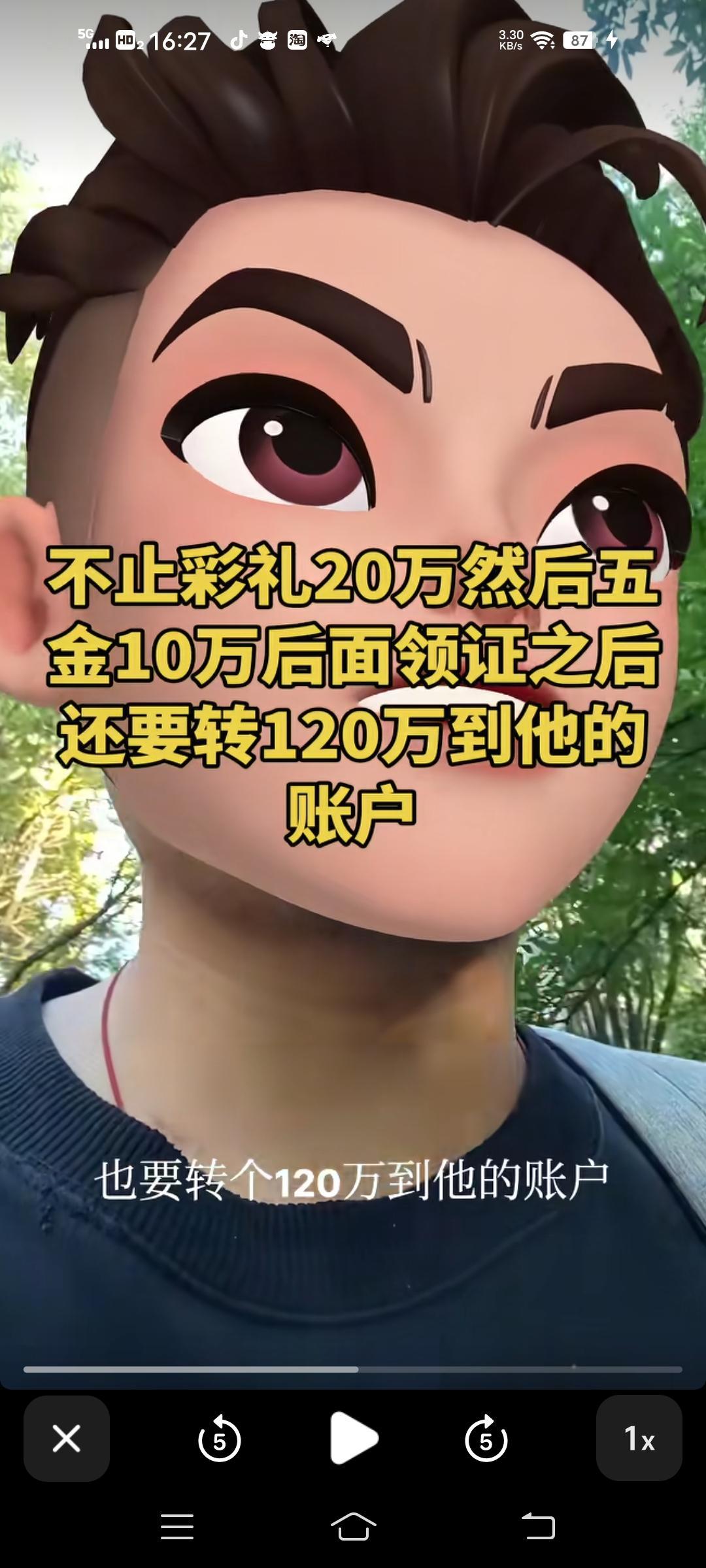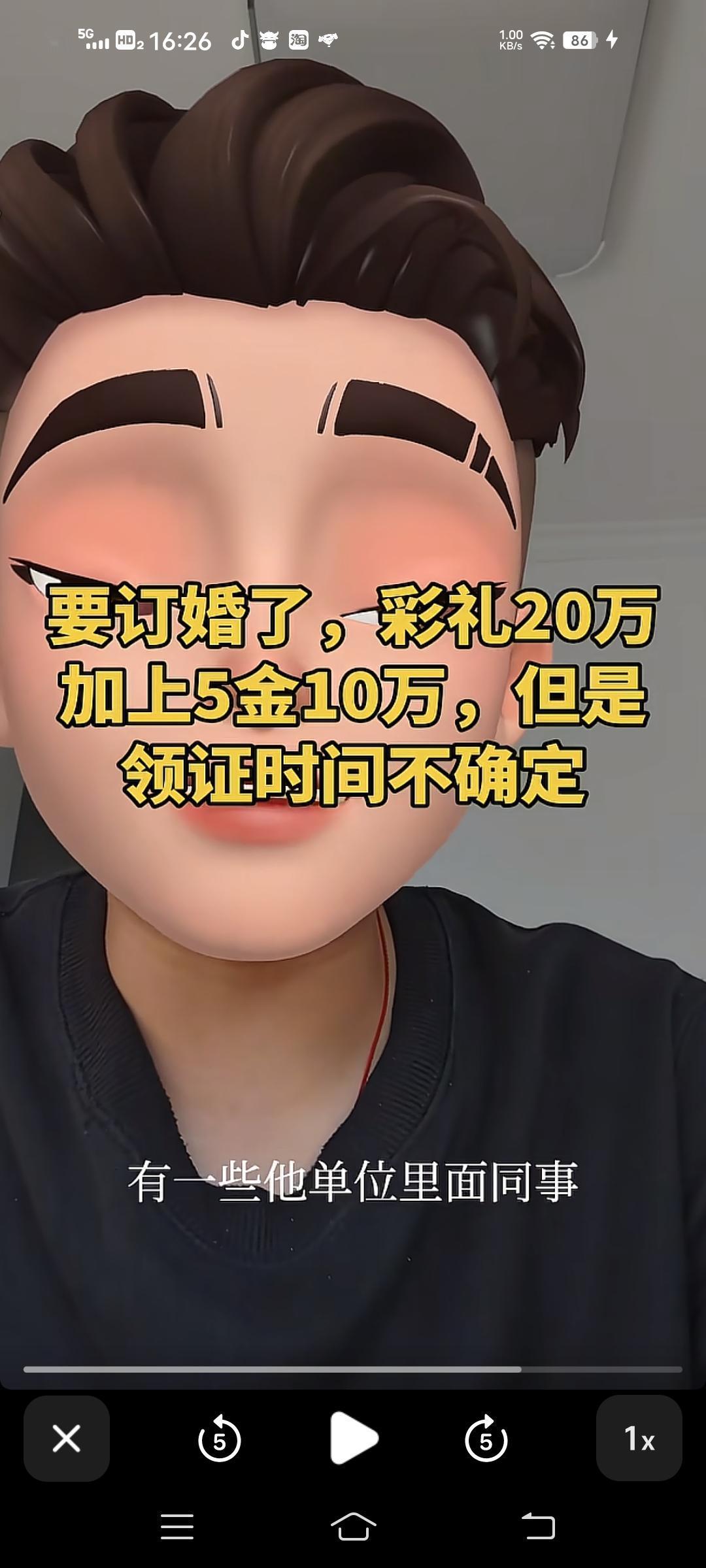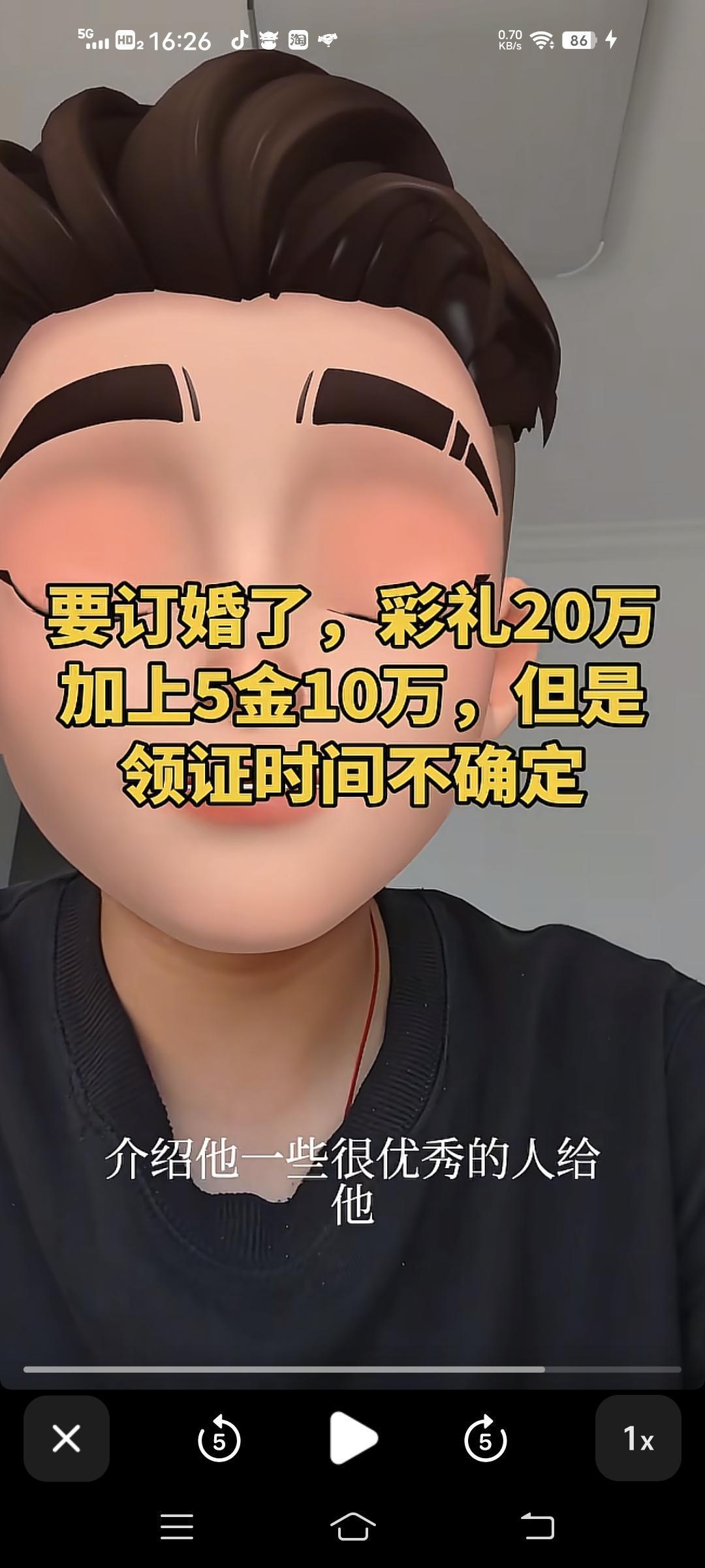 云南,男子发视频吐槽:自己和女友订婚彩礼20万、五金10万,现在已经把十万转到女友账户,但女友表示明年再考虑领证,后面领证之后还要转120万到她的账户…… 在这位男子的描述中,我们知道,这个女的是央企工作的,她的同事还在给她介绍比较优秀的男士。男子表示自己接下去也不知道怎么办了,是继续给她钱呢?还是怎么样? 目前,该男子的某音账号就这么两个视频,他讲述的到底是真实发生的事情,还是他为了起号而虚构的事情,我们不得而知。 评论区诸位看官,你们怎么看?