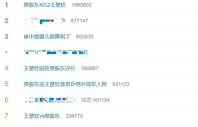 樊振东和王楚钦的这场半决赛热度太高了! 以至于林诗栋晋级决赛了都没几个人知道。[捂脸] 微博热搜前十,樊振东和王楚钦占据了一大半。 不得不说,乒乓球的国民度实在是高。[赞] 吴敬平说,【这场半决赛,是火星撞地球,是中国队的巅峰对决。 这场比赛不管输赢,他们都将是2028年洛杉矶奥运会的绝对核心。[呲牙]】 确实,虽然王楚钦输了,但是能看出来,他的实力也不像网上有些人说的那样“不堪一击”。 樊振东固然强大,但洛杉矶奥运会光靠他一个人也不行。 从吴教练的话就能看出来,樊振东和王楚钦都是下届奥运会的主力。
