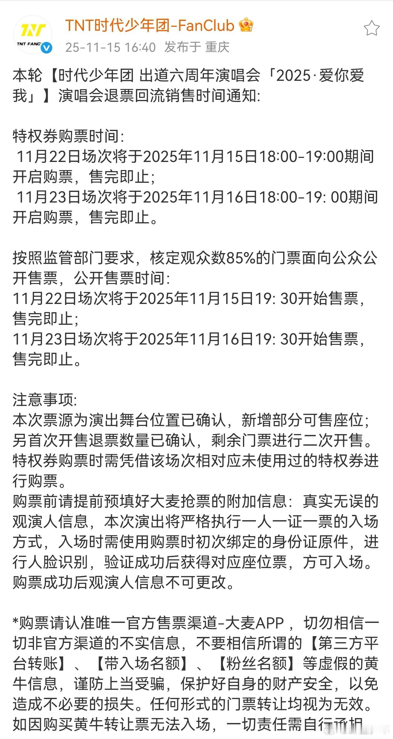 救命!回流票开启时间直接戳中期待值!从特权券场到公开售票,每一秒都是抢票大战,时团的号召力就是让全网为这场六周年之约疯狂✨