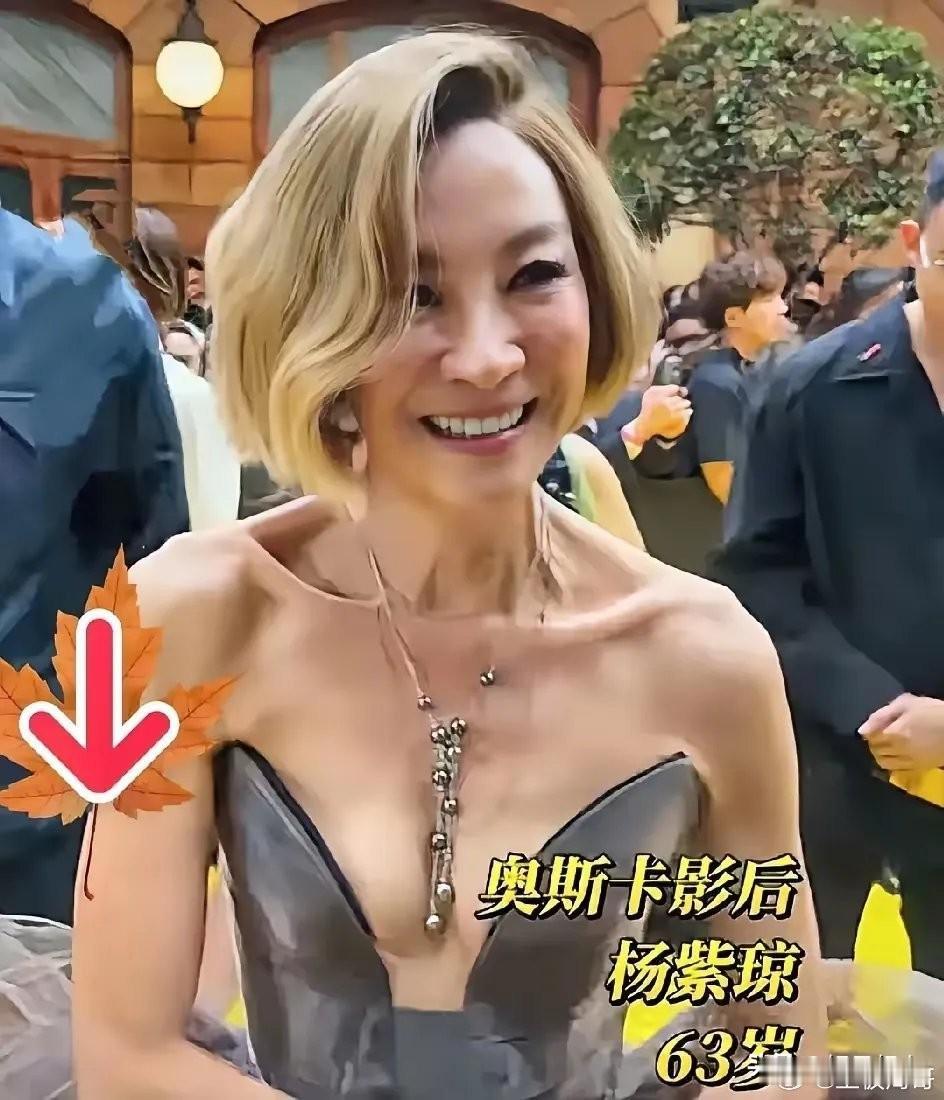 图三:63岁的杨紫琼身穿法国奢侈品牌礼服,状态引发热议! 有人夸她面色红润、身材紧致像36岁,也有人吐槽她瘦得吓人,颈动脉暴起、锁骨凹陷,抹胸裙还把肉挤到咯吱窝。作为4岁学芭蕾、凭《皇家师姐》《警察故事3》封神的“功夫女皇”,岁月虽留下痕迹,但她的演艺成就始终让人佩服。