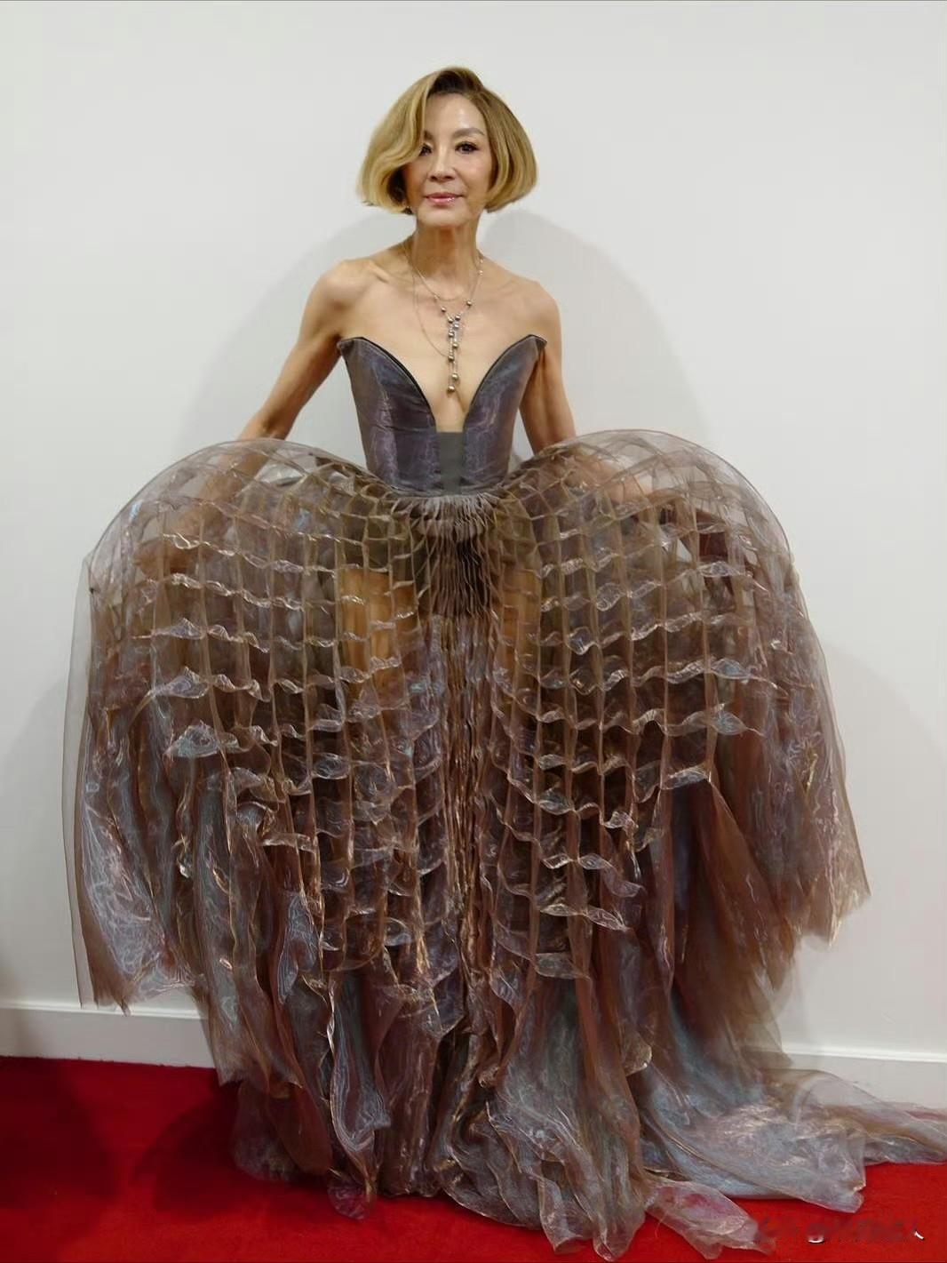 图三:63岁的杨紫琼身穿法国奢侈品牌礼服,状态引发热议! 有人夸她面色红润、身