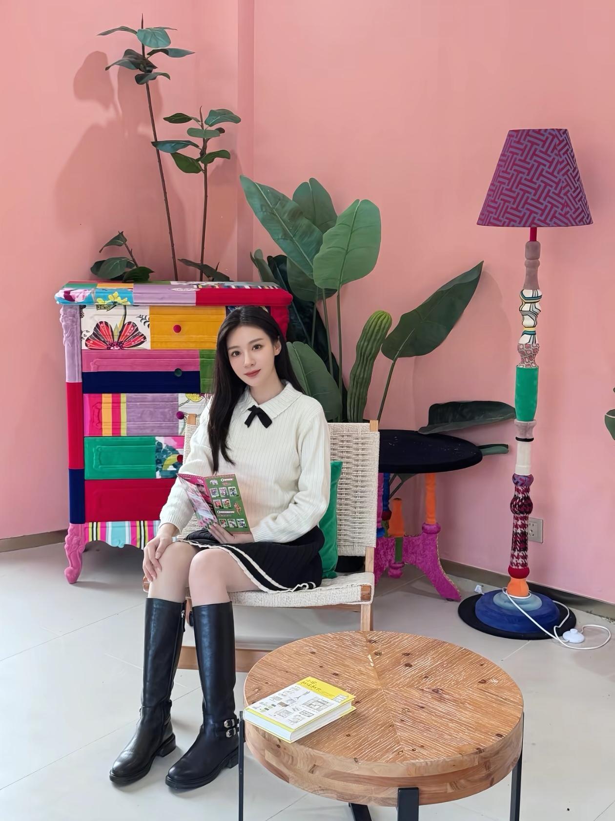 优雅职场风穿搭,复古咖啡馆里的时尚女郎
