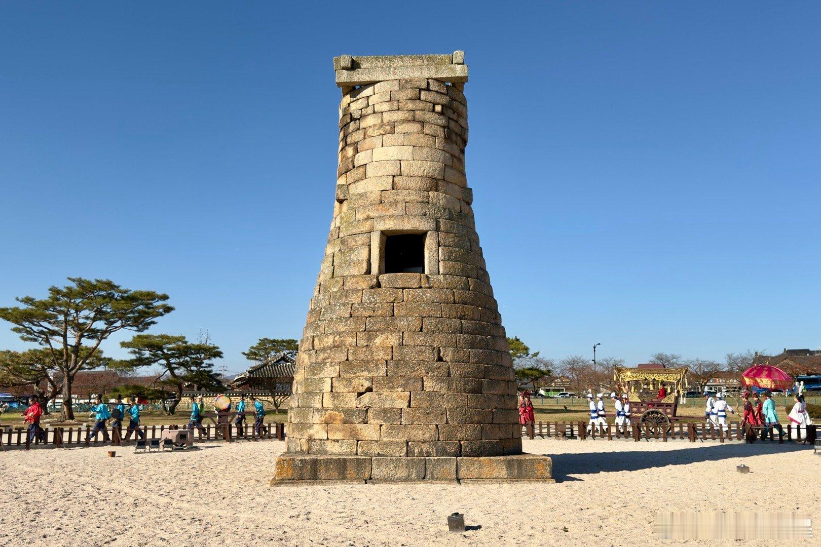 打卡世界遗产庆州。庆州是韩国古都,新罗国曾经建都于此,留存众多文化遗产,2000年被评为世界文化遗产。新罗在庆州留存的最重要的地面建筑是瞻星台,韩国国宝第31号,这是唐太宗贞观八年(534年)由新罗第27代王善德女王主持修建的,也是东亚乃至全球现存最古老的完整天文台建筑。瞻星台高9.17米,采用362块花岗岩石砌筑,象征阴历一年天数。瞻星台虽然不大,但是晚上有灯光秀,白天有善德女王游行,还是有趣味性的。另外庆州有很多坟冢,在市区里星罗棋布,那些大金冠就是从坟里出土的。图8-9是庆州最火的糕点“皇南包”,是一种细腻的豆沙包,前些天老大去庆州开Apec,尝了说好吃,结果上韩国新闻了。据说李大统领一口气送了200盒… 现在这个非常火爆,要排队购买领货券,然后隔一段时间再来拿货。