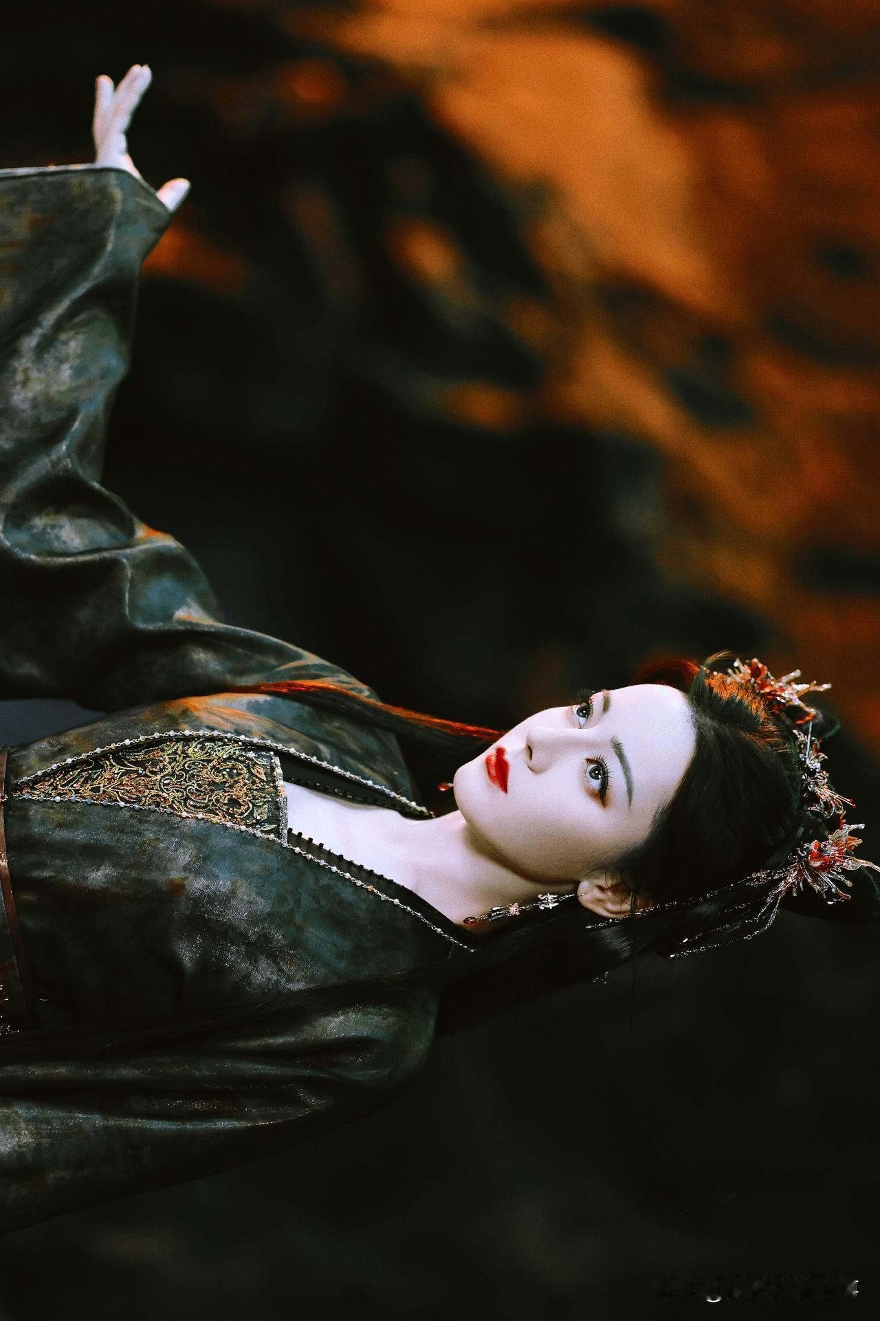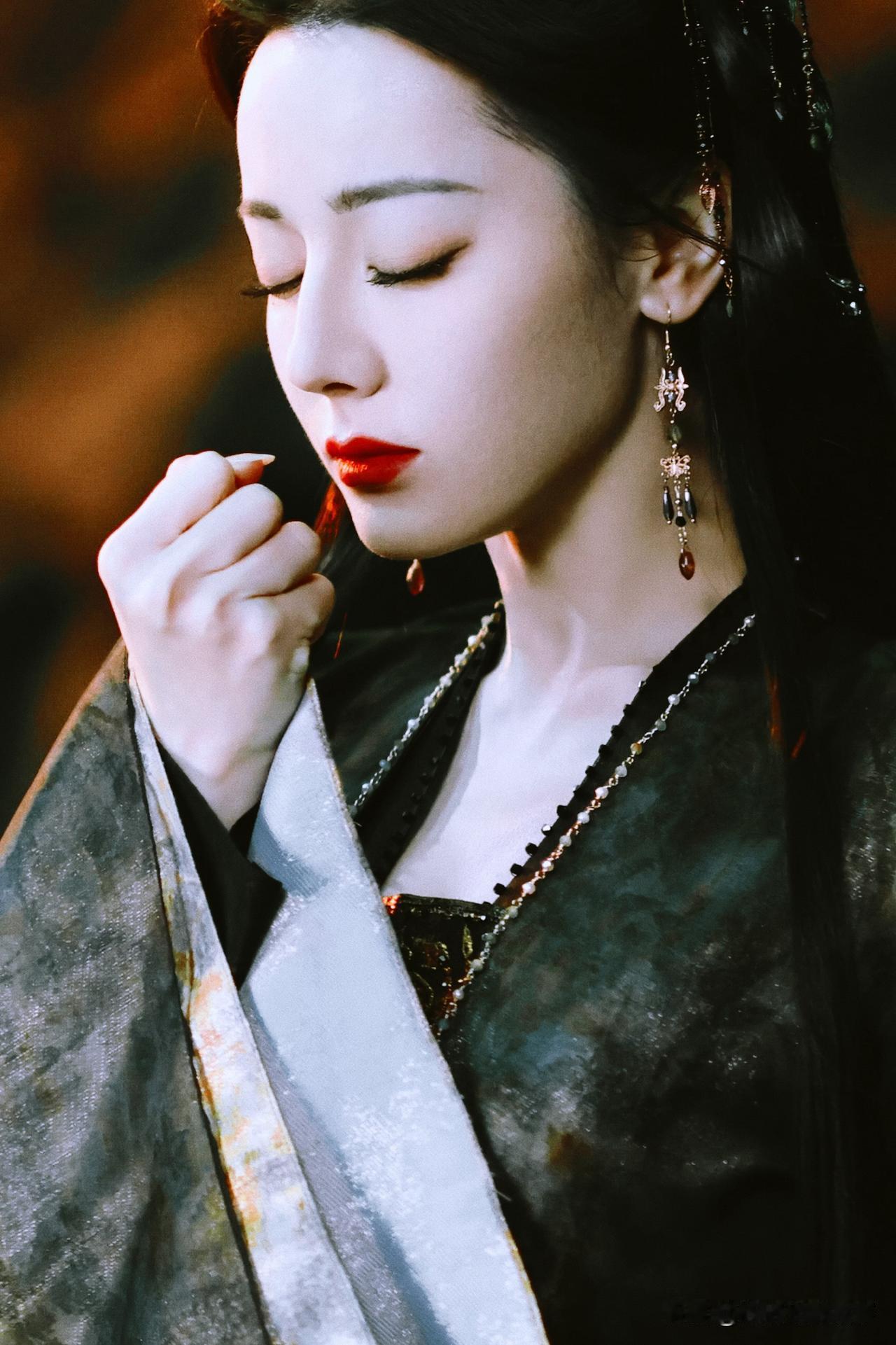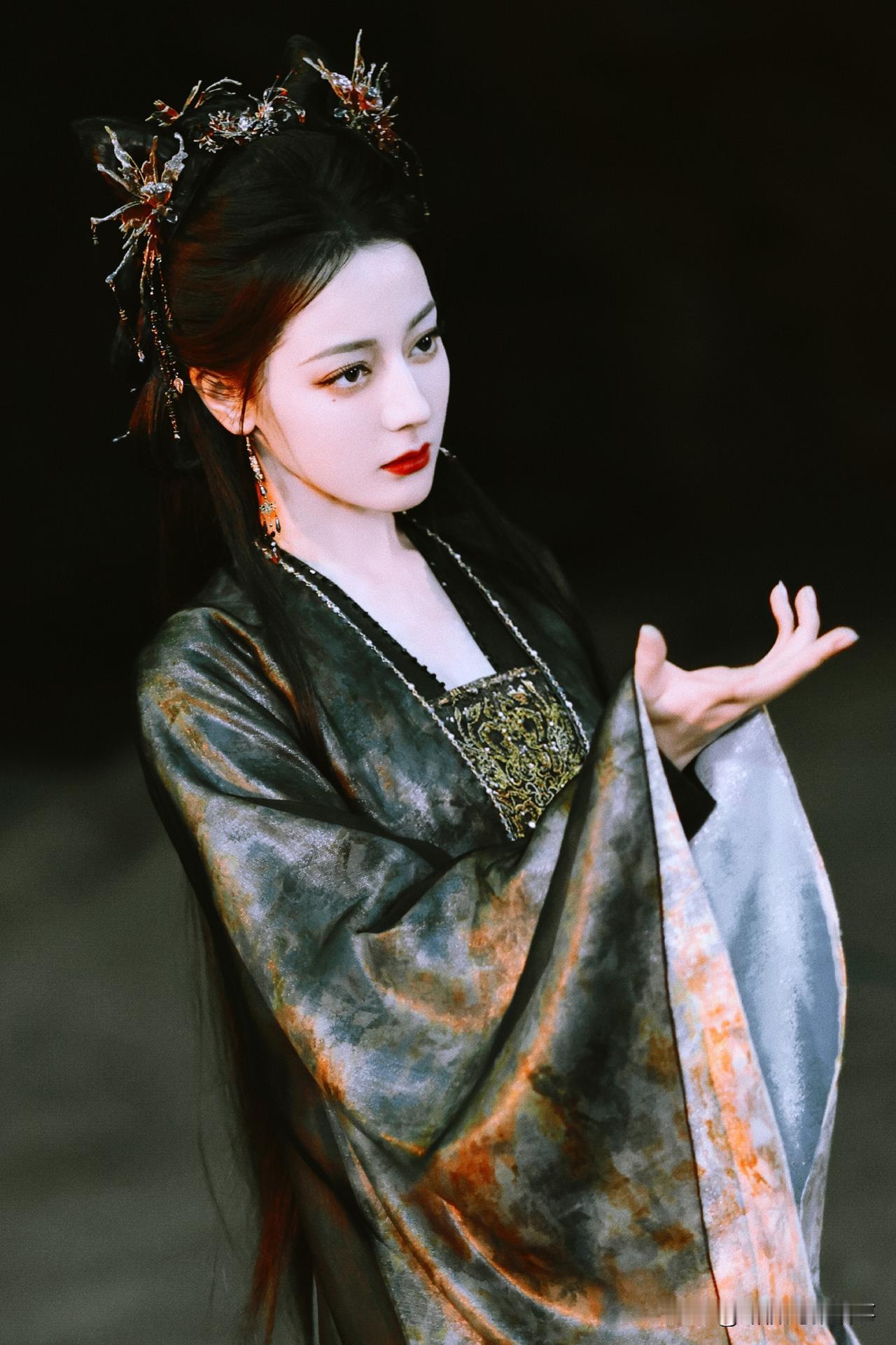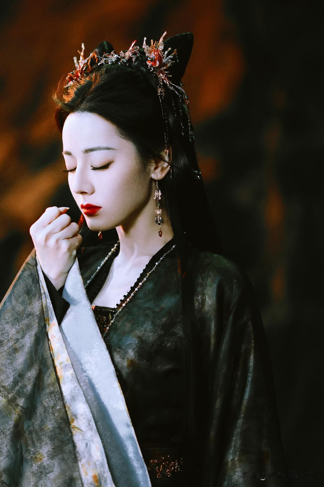 《迪丽热巴慕胥辞:一眼勾魂的黑狐魅主》 当迪丽热巴以慕胥辞造型现身,玄色纱衣晕染金红纹路,如暗夜狐裘裹着艳骨。额间碎发垂落,鬓边银钗坠着红珠,随眼波轻晃似狐尾扫心。红唇噙着冷艳,抬眸时眼尾那点痣,是勾魂的朱砂。她抬袖间纱袖流金,指尖轻抬便似要拢走世人魂魄——这哪里是角色,是活在暗夜里的九尾妖主,媚骨里裹着弑神的冷。