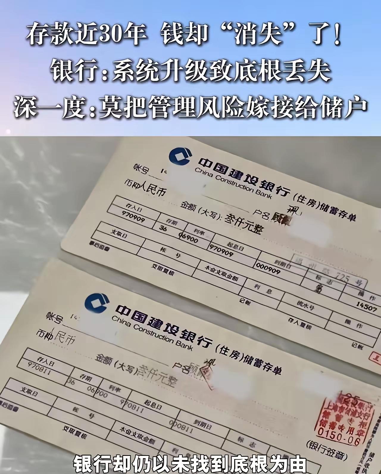 上海大妈这事儿也太气人了!28年前存的6000块,现在翻出存单去银行取钱,居然被一句“找不到存根”拒之门外,换谁能忍? 1997年的6000块多金贵啊,相当于现在好几万,大妈当初就是信银行靠谱才存的,还选了自动续存,结果打扫卫生翻出来了,银行倒不认账了。说什么手写存根没录入系统,名字生僻字出错,这些都是银行内部管理的问题,凭啥让储户买单? 《商业银行法》明明写了取款自由,存单是真实的,银行就该兑付。要是欠银行钱,别说28年,一辈子都能追着要,到储户取钱就找借口,这双标也太明显了!银行的信誉就是这么攒没的? 老百姓把钱存银行,图的就是安心,要是连真实存单都不管用,以后谁还敢存? 你们觉得银行该无条件兑付,还是让大妈继续等银行查存根?