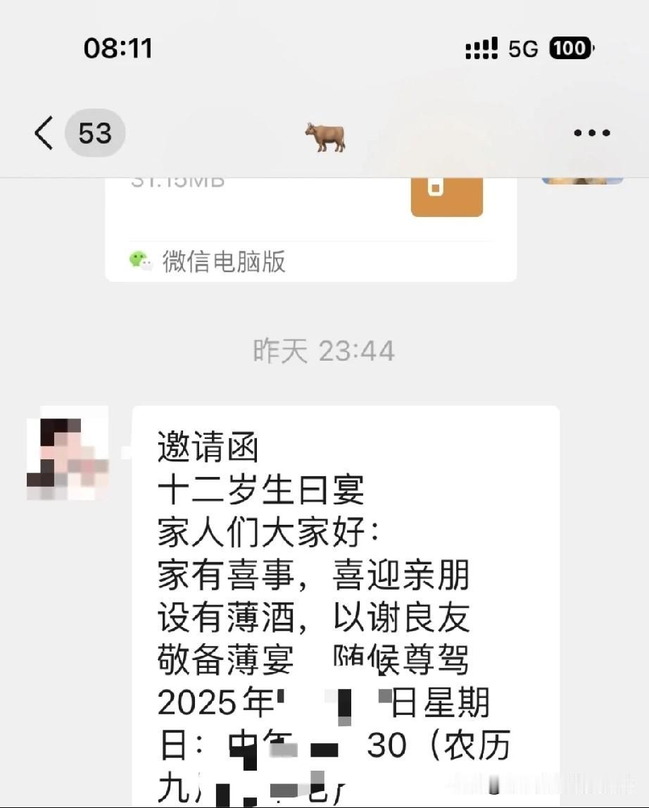 十二岁生日要办酒?这酒喝得我钱包一哆嗦 十二岁生日宴邀请函,文字写得倍儿客气:“家有喜事,喜迎亲朋”,但我脑瓜子直接懵了——这年纪办酒,是我跟不上“喜事节奏”了? 有人说“现在满月、周岁、十二岁全安排,随礼随到吃土”,有人吐槽“这哪是庆生,是钱包劫”,还有人回忆“咱小时候就买个蛋糕,哪有这阵仗”。 说实话,办酒本是图热闹,但现在喜事越办越多,随礼越随越重——到底是人情味儿,还是“份子钱绑架”? 你说,这十二岁宴要是喊你,你是去凑热闹,还是找借口躲?
