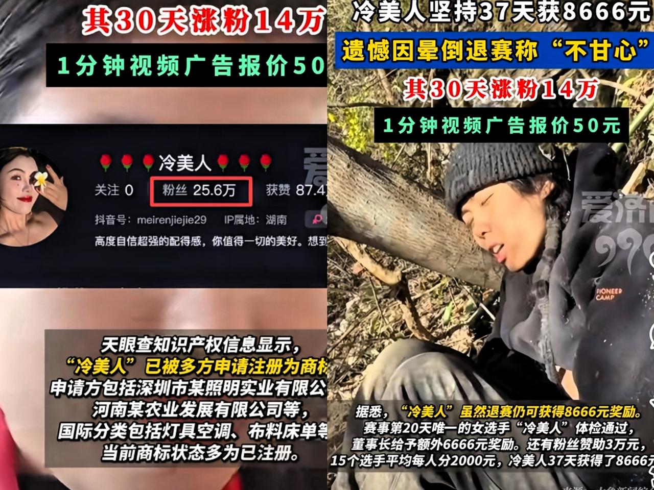 冷美人退出荒野求生这事儿,她只撑了36天,退赛后到手才8666块!但涨粉10多万,这波她是赚还是亏呢? 搁野外遭了一个多月罪,风吹日晒吃尽苦头,结果钱还没进厂打工一个月多。明明规则说阶梯式10天奖励,36天按说能拿万把块,再加2000保底该有12000,咋算都差一截子。 这里面的算法咱们不懂,但是她的账号涨粉14万确是事实,而且还注册了商标。后期还有品牌方的奖励。现在看是亏了,以后可就不好说了呢! 大家对此怎么看,评论区聊聊~ 荒野冷美人