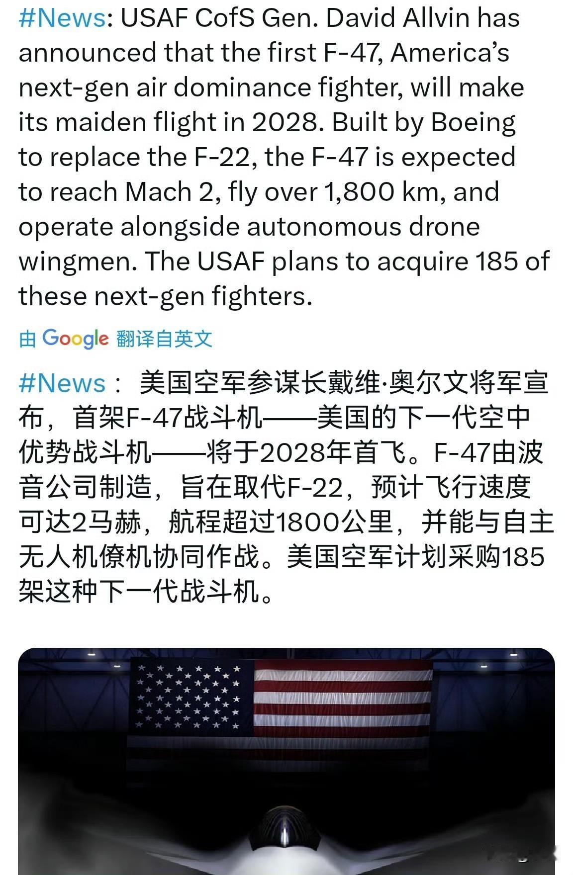 力争替代F22,赶上歼20…美国空军参谋长奥尔文将军最新宣布,F-47战机将于2