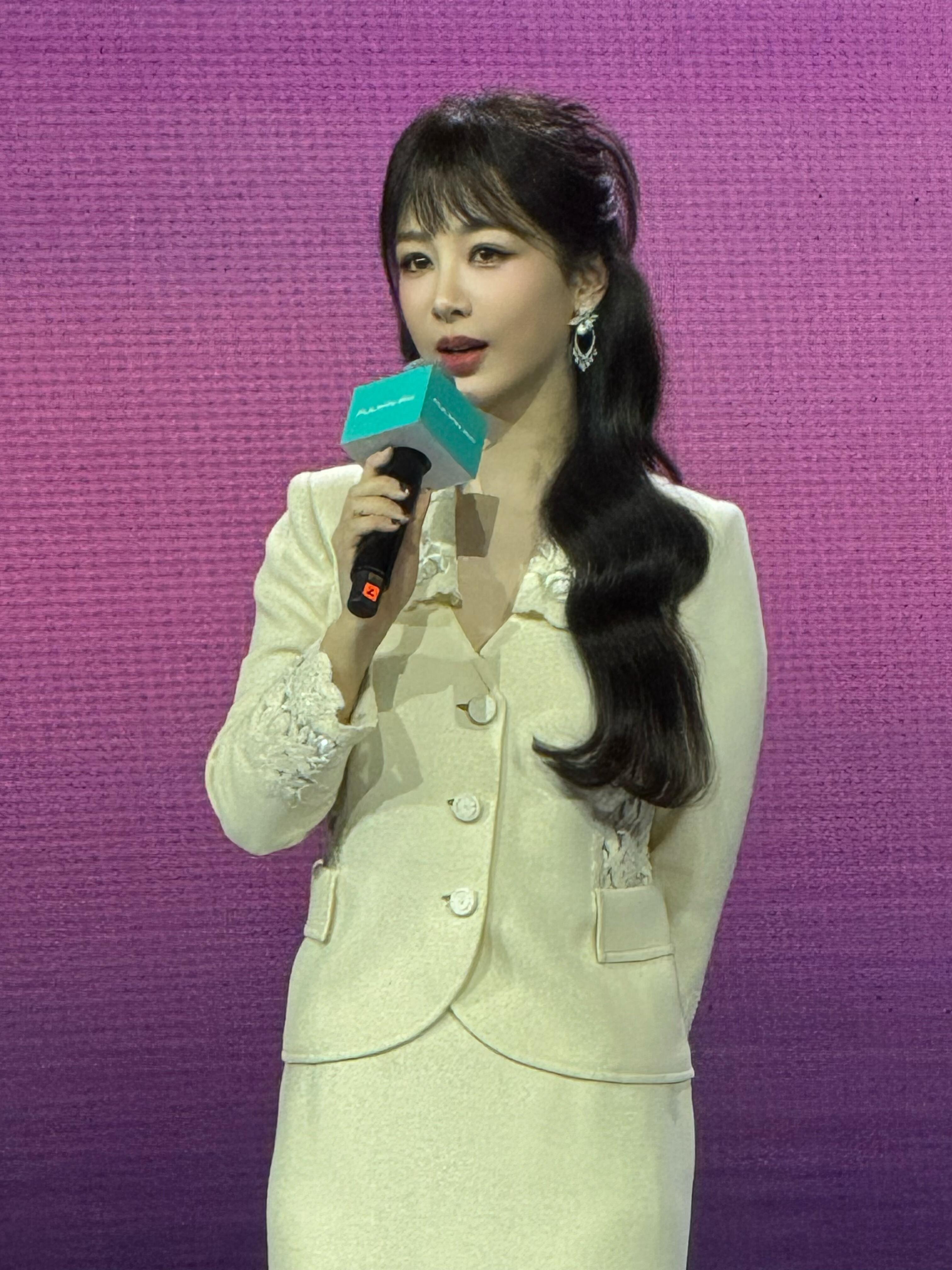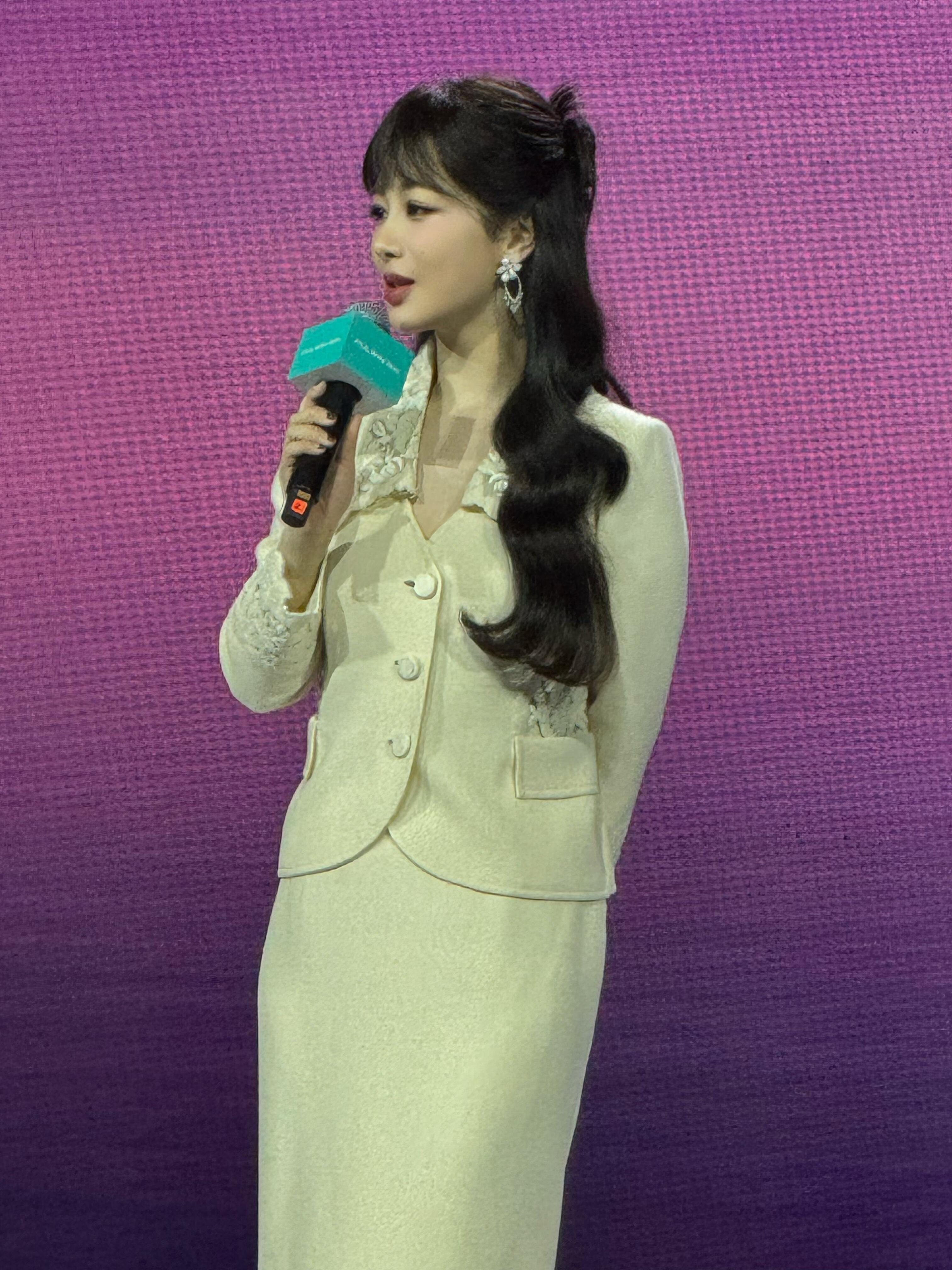好漂亮哦紫妹!左边打完招呼右边又开始比心哈哈哈