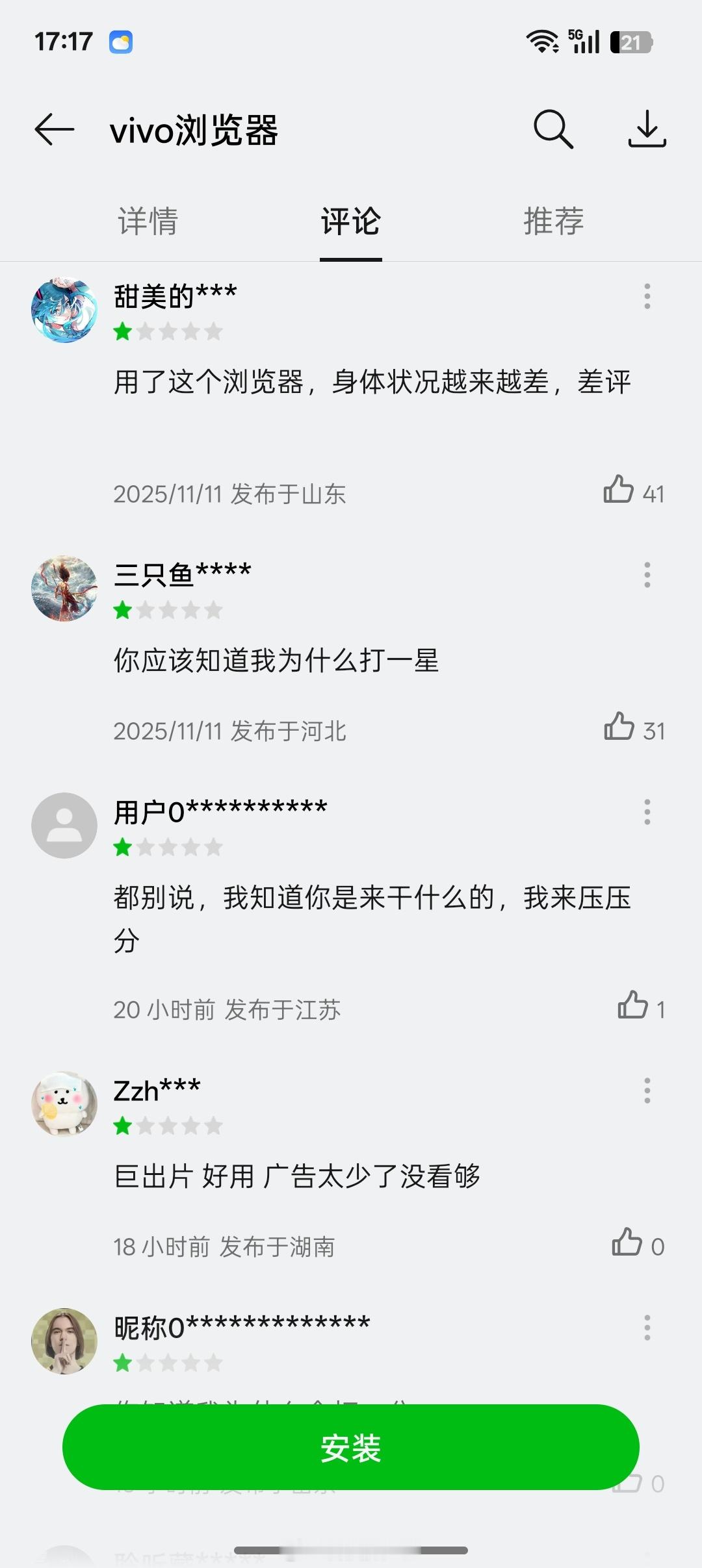 OPPO一加也有vivo浏览器,好多故意打低分的
