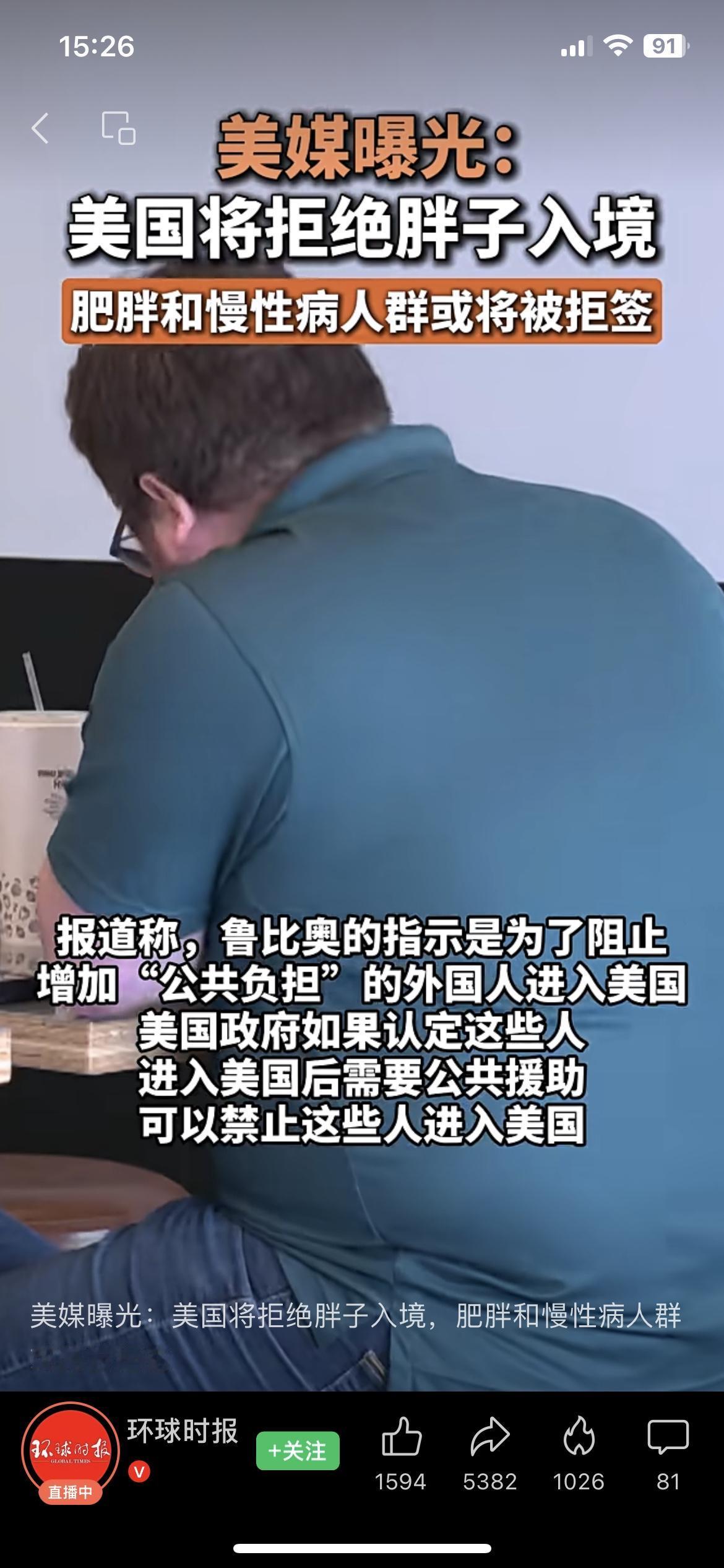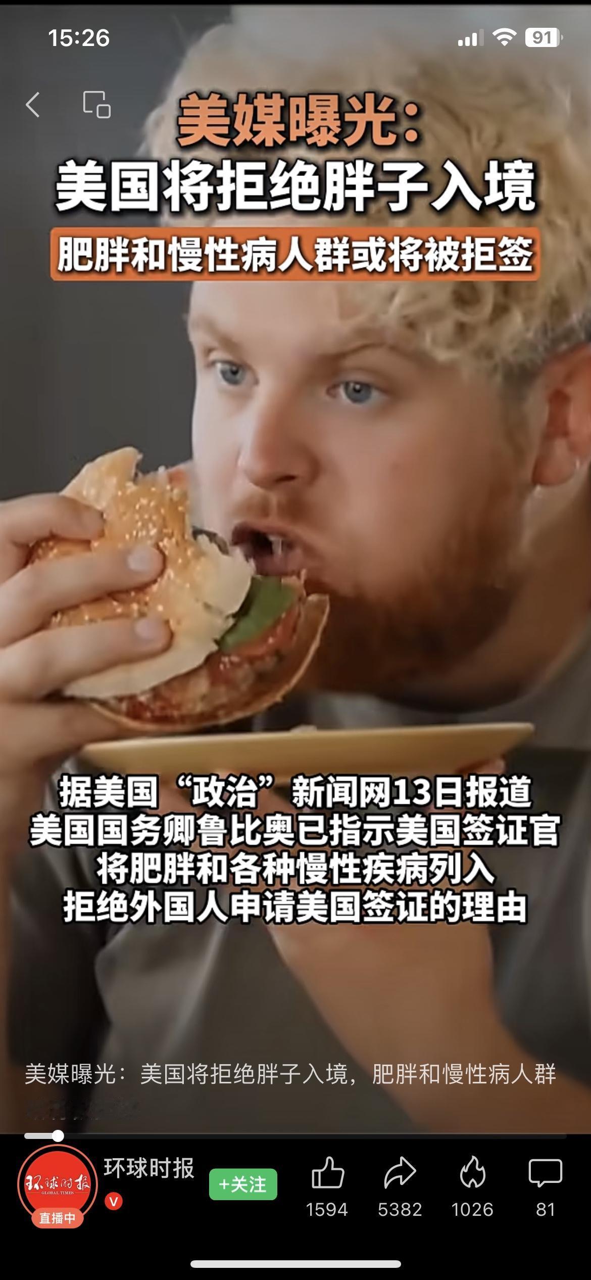 美国这操作,把胖子坑惨了! 刚刷到的,美国签证又作妖了——胖子、有慢性病的,可能直接不让入境! 说是国务卿下的令,怕这些人去了花美国的福利钱。合着胖现在也算“毛病”了?以后想赴美看孩子、旅游,难道得先瘦到标体?这事儿你觉得到底是合理,还是纯纯歧视? 结尾:家里有要出国的,赶紧提醒一句!评论区说说,要是你遇上这事儿,能气成啥样?美国签证限制
