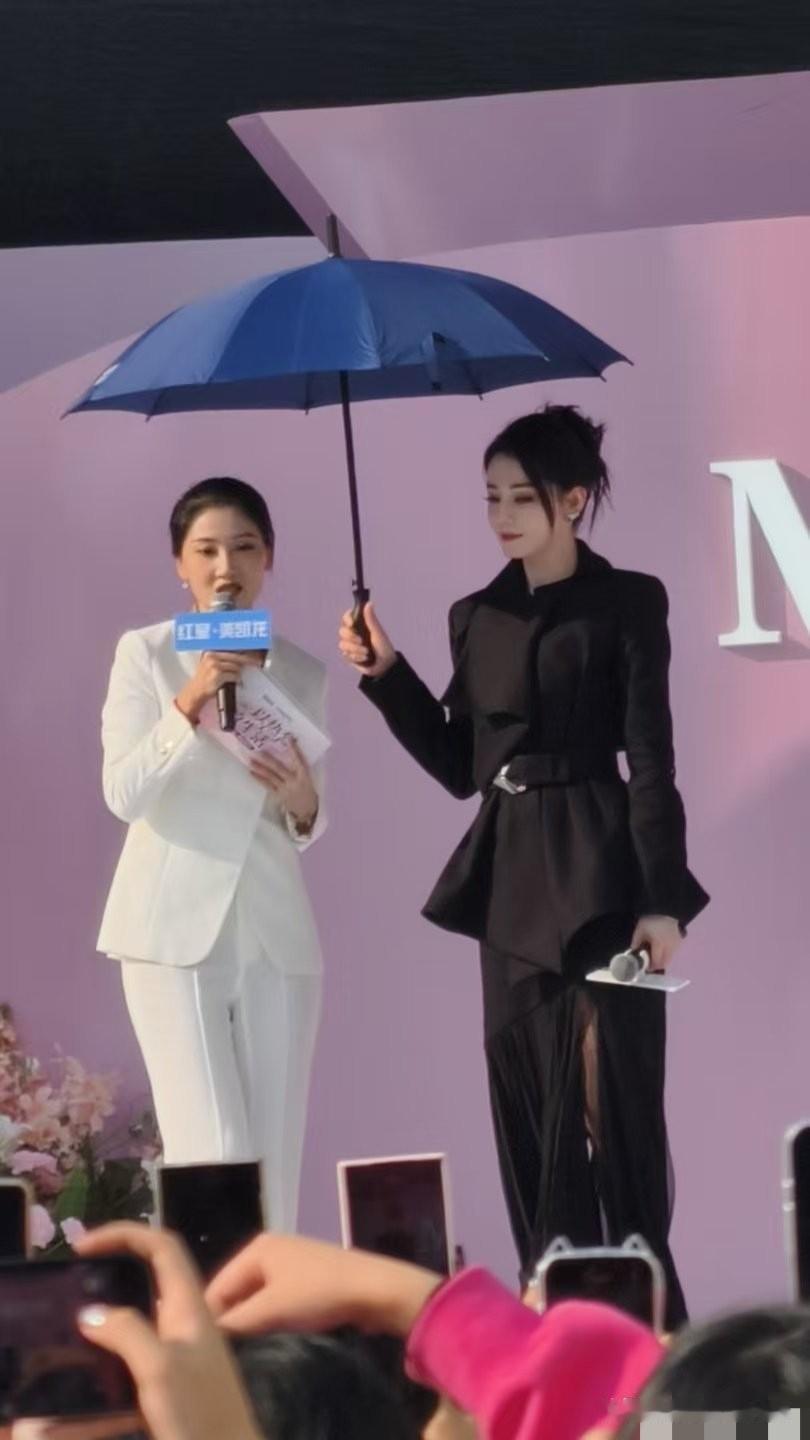 《迪丽热巴撑伞:把温柔给别人,也留份暖意给自己》 粉色背景前那把蓝伞,是迪丽热巴藏在细节里的温柔——伞檐偏过去的弧度,是把防晒都让给主持人的妥帖,黑裙飒爽的她,指尖都裹着软乎乎的关心。 可她鬓边翘起的碎发、轻垂的眼尾,又藏着没说出口的疲惫。换季的风里,想把她给别人的温柔还回去:热巴,你也记得添衣,累了就慢下来歇一歇,你的温柔,值得被自己好好接住呀。