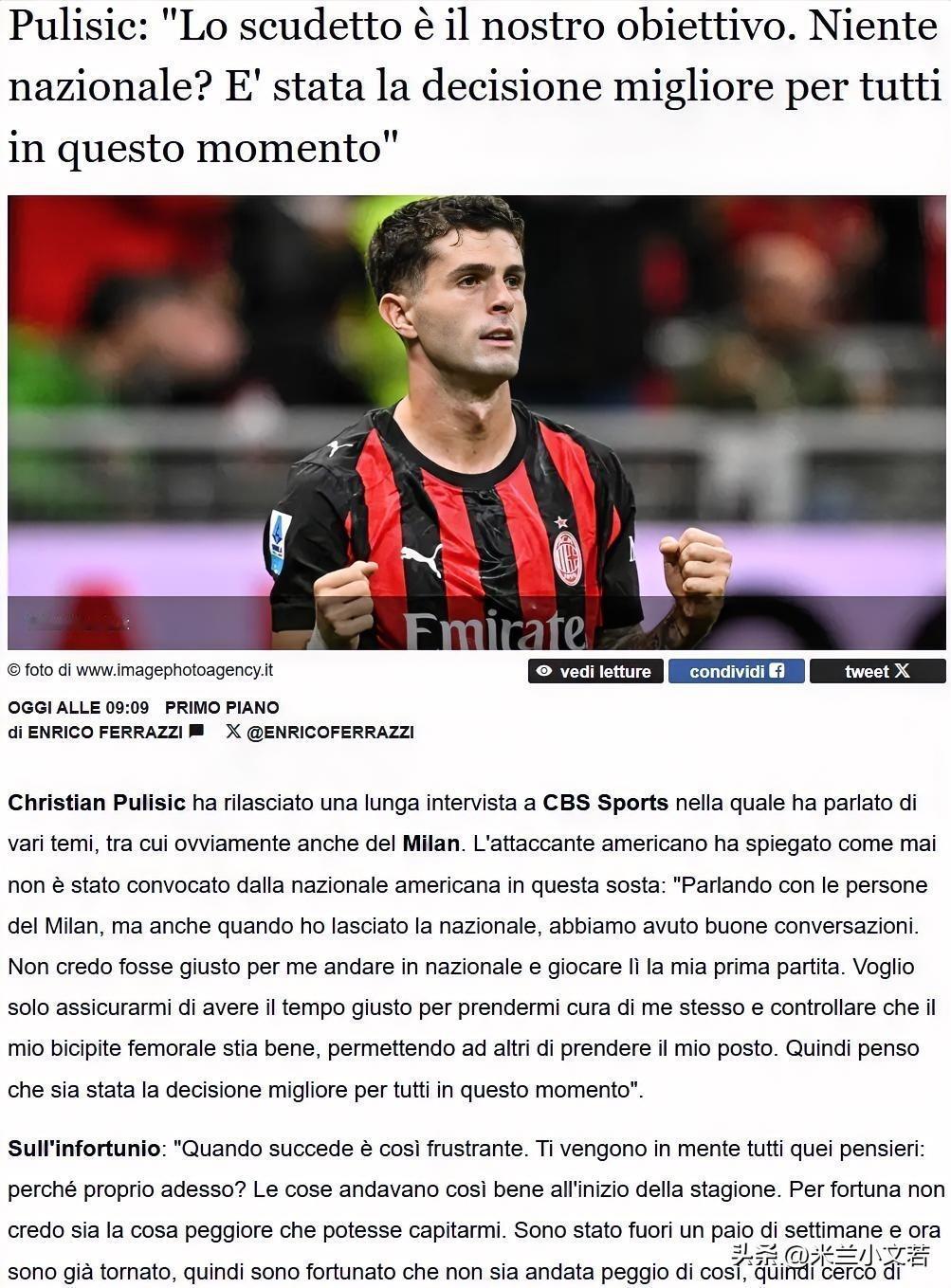 普利西奇!普利西奇接受采访表示没有去国家队是我个人的选择与米兰俱乐部无关,俱乐部