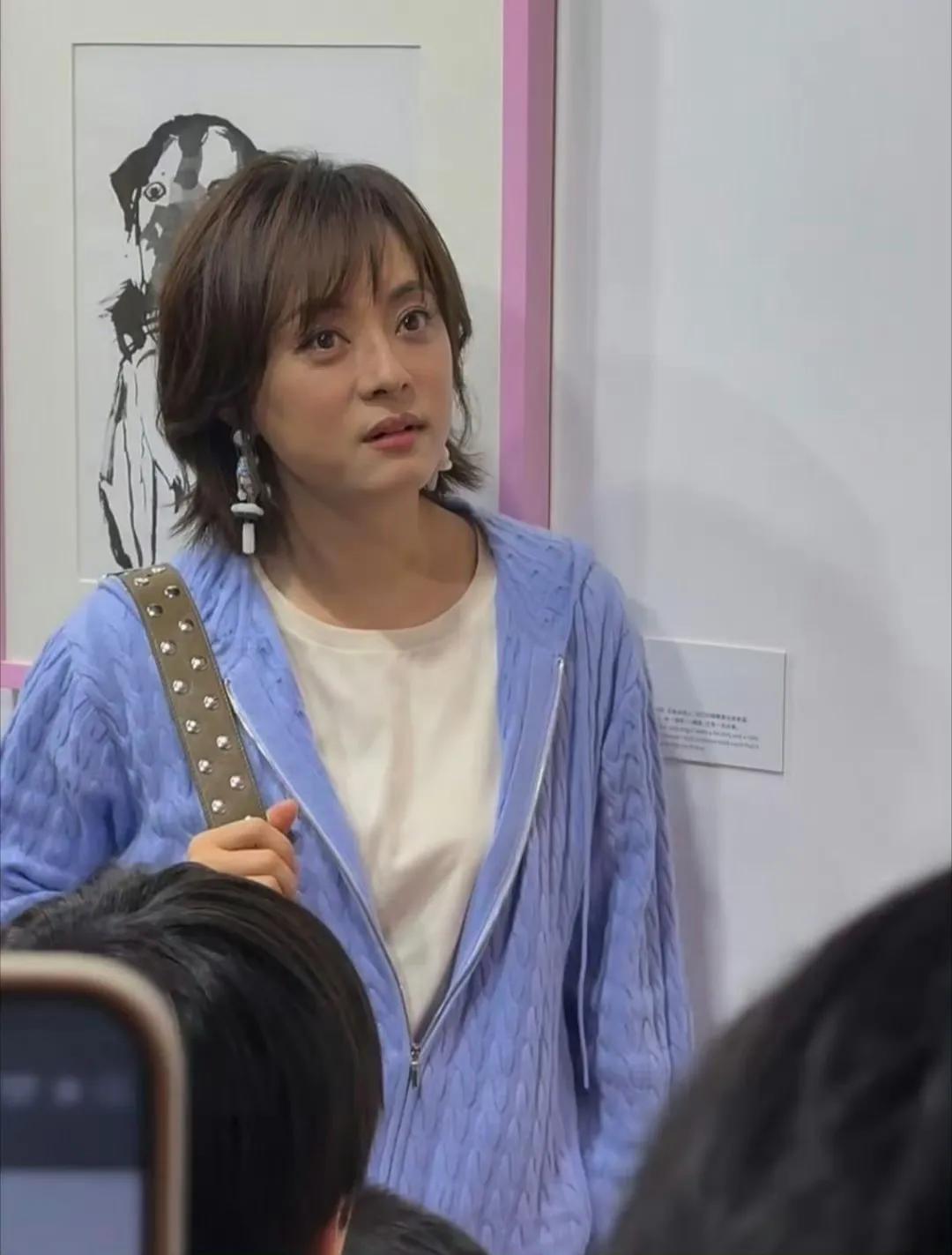 43岁孙俪在上海看花展,她的打扮时尚,脸型圆圆的,看起来很有福气。就是黑眼圈有点