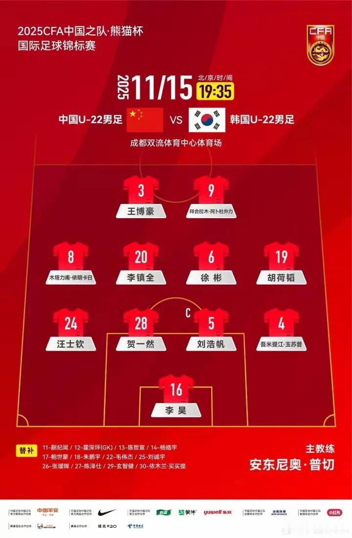 韩国队也没有那么强大,上半场双方握手言和,中国队0比0韩国队,沉闷的上半场,双方都打得比较稳,都是防守反击,安东尼奥今天的首发阵型和上一场几乎一模一样,就换了一个门将李昊上场,还是532阵容,王伯豪和拜合拉木继续打双前锋,上半场双方机会都不多,中国队制造了两次威胁,可惜未能破门,韩国队就最后一分钟制造了一次威胁,半场结束,双方0比0打平。 看样子,双方主教练都在赌下半场,安东尼奥下半场大概率要派全运会队员出场了,韩国队也会派上杀手锏,希望下半场双方上演进球大战,韩国队也不怎么样,中国队争取复仇韩国,中国队加油!