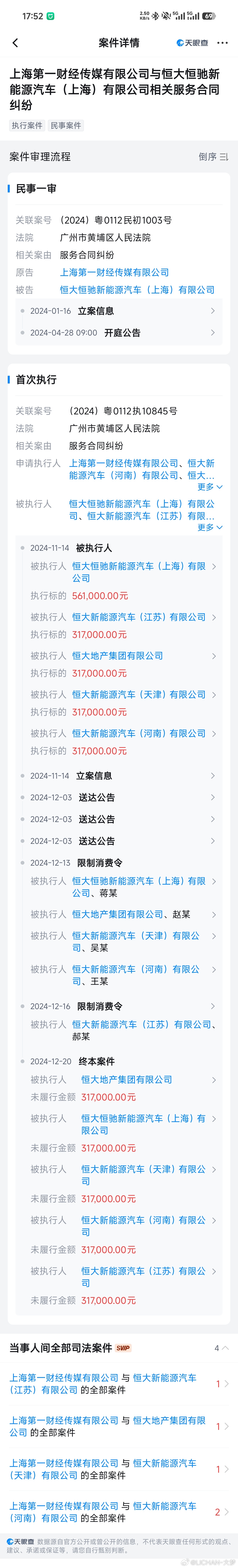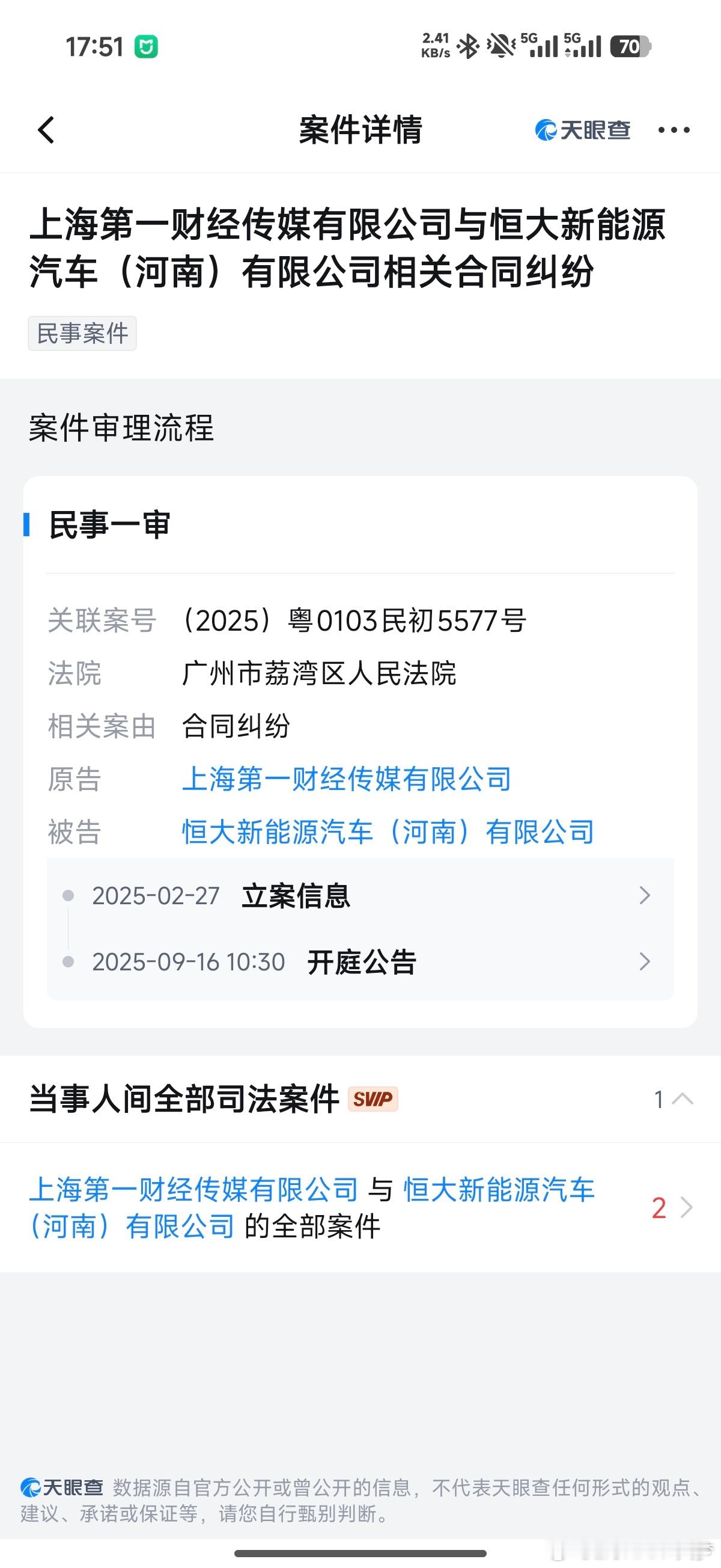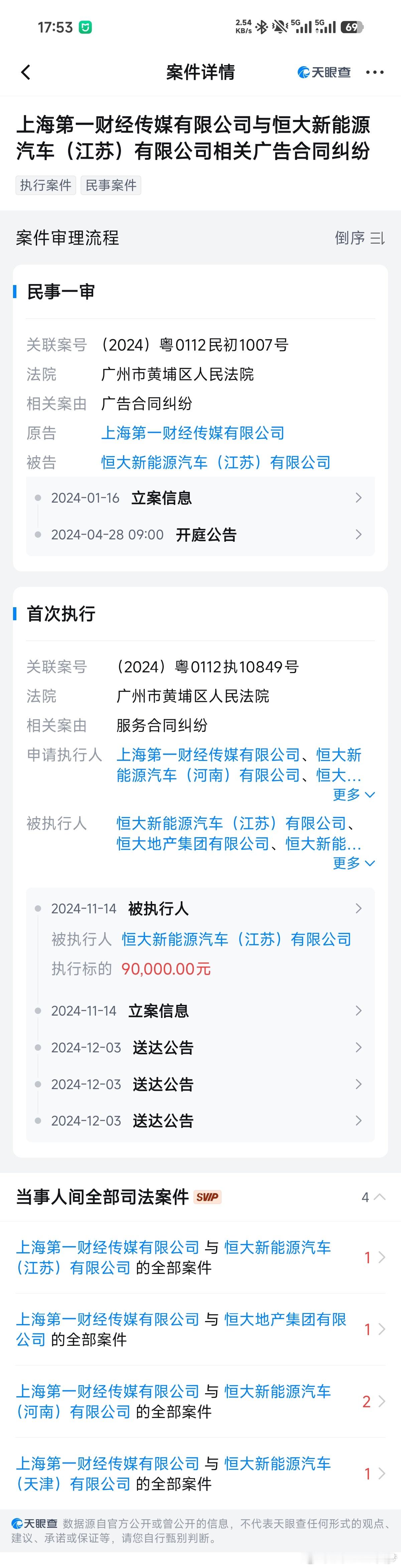 搜了一下第一财经确实跟恒大汽车之前有不少“服务合同纠纷”,具体是什么就不知道了,但是金额看起来确实不低…